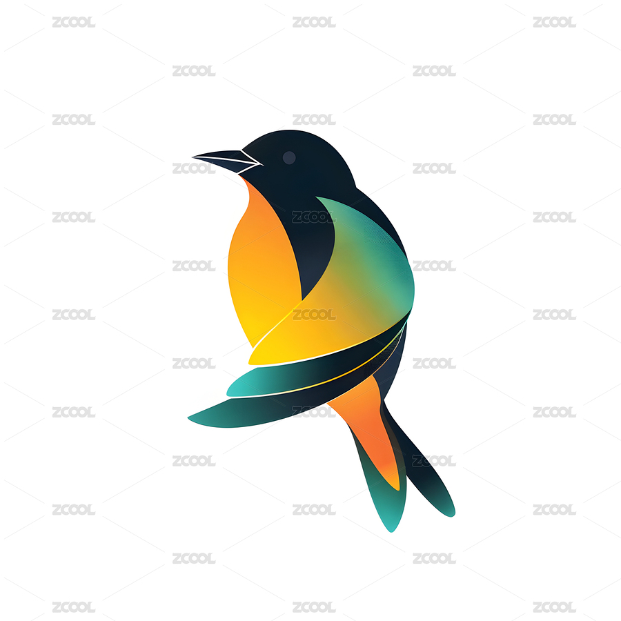 小鸟,图标,logo,白色背景,平面风格,彩色