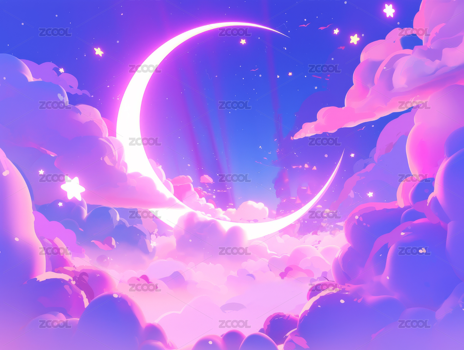 唯美治愈云层月亮奔跑的灵鹿背景插画