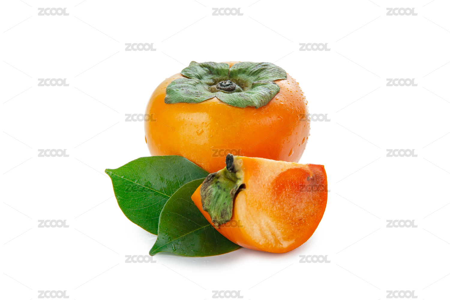 柿子,黄色,水果,叶子,柿,脆柿,新鲜,美食,美味,微距