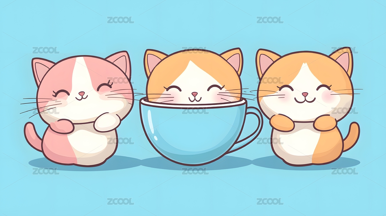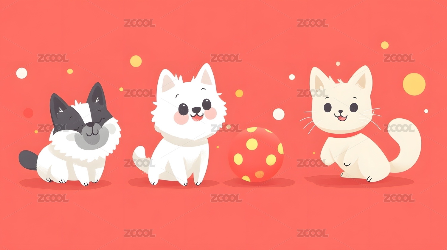 可爱的熊、狸猫、哈士奇、老虎、兔子形象矢量图