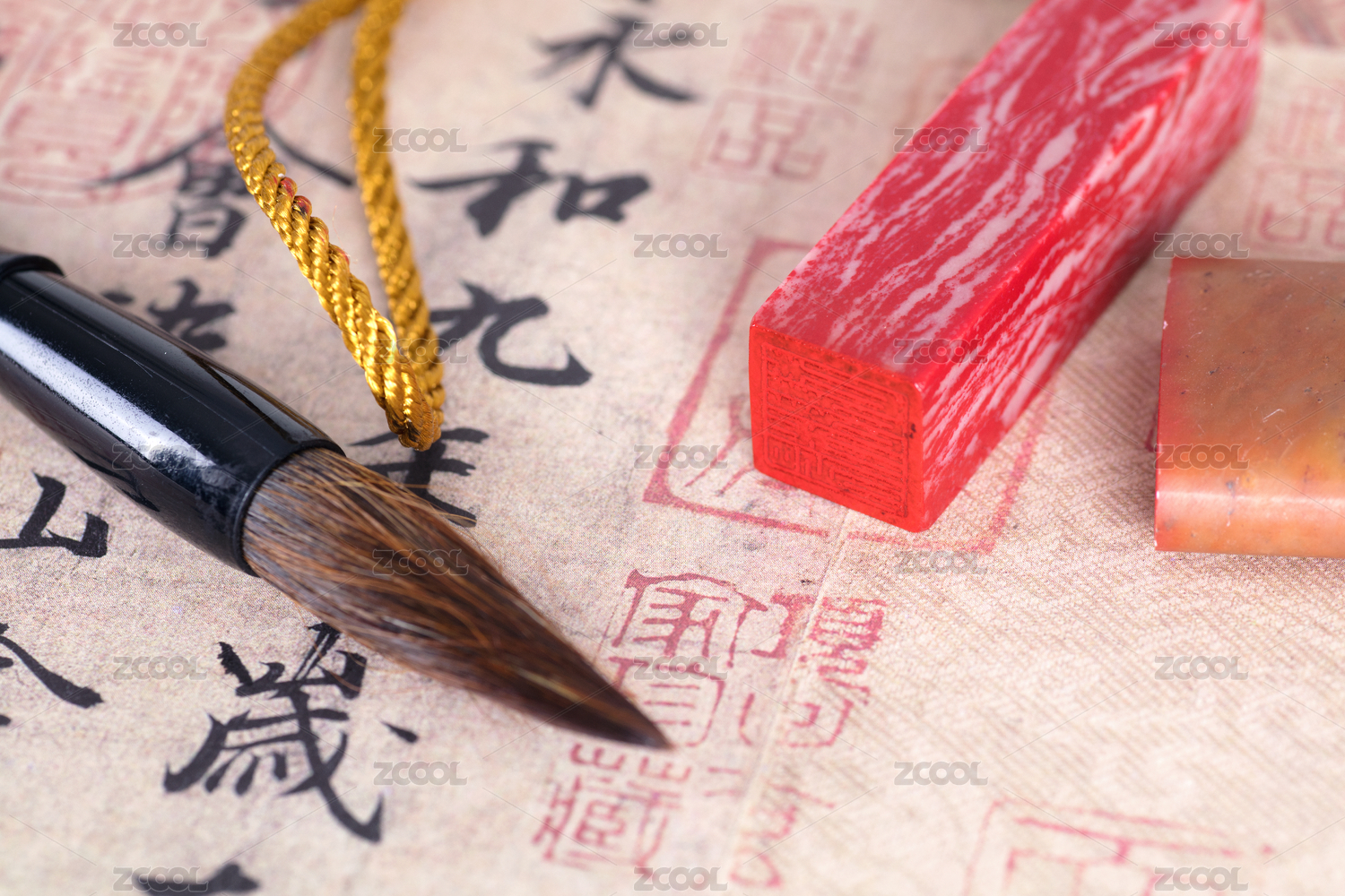 中国传统书法作品和石头印章