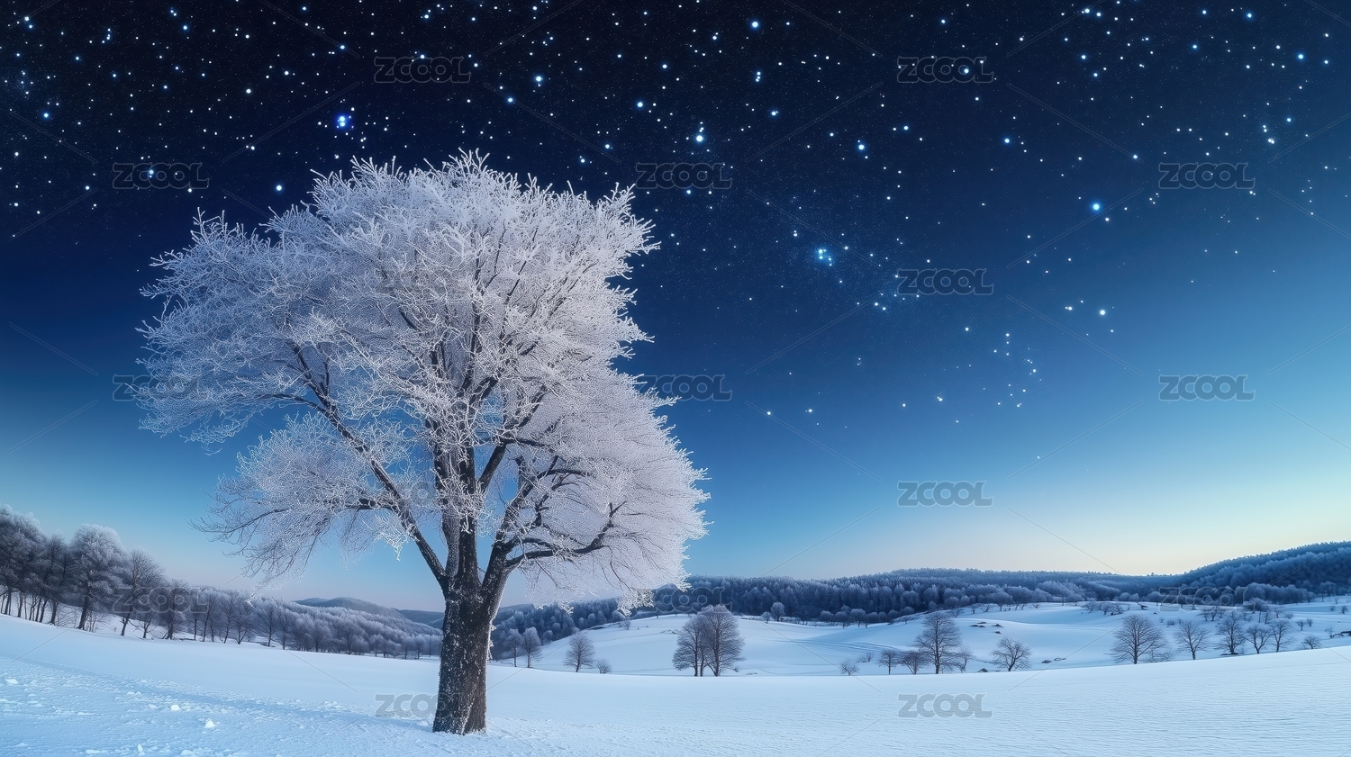 冬日星空下的霜雪树