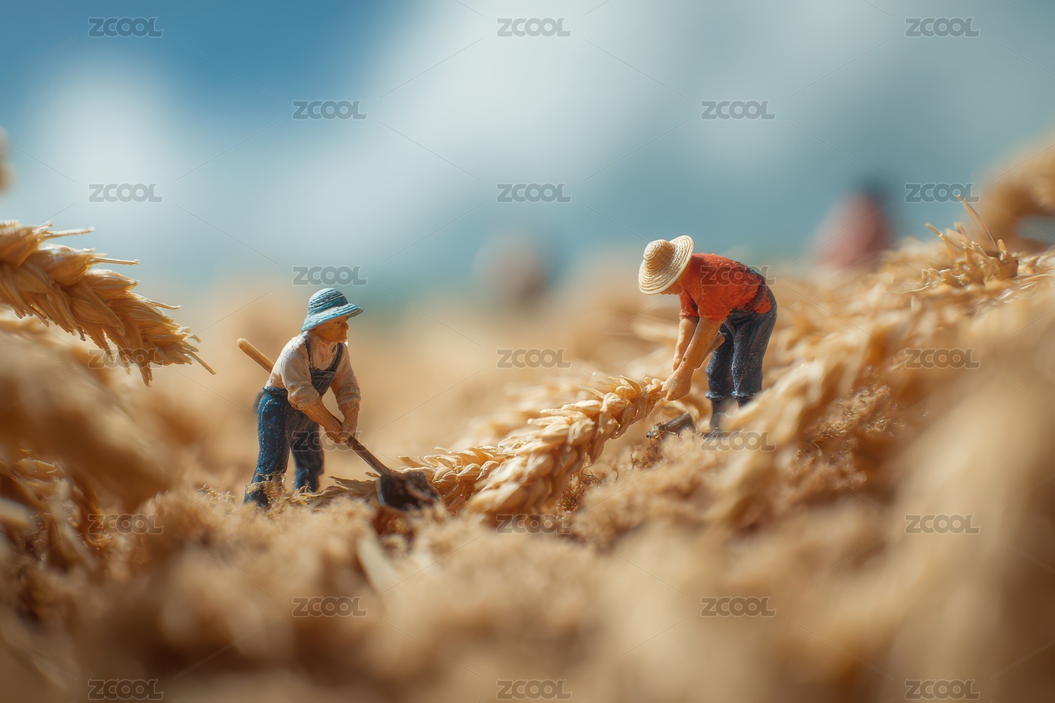 麦穗,麦子,小麦,劳作,干活,农活,劳动,人偶,模型,微距