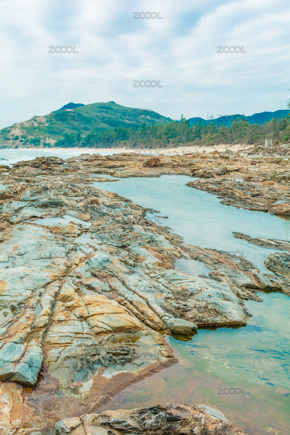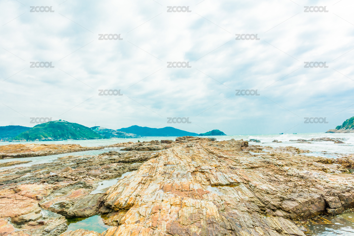 惠州盐洲湾仔岩石海滩和盲婆岭朝霞风光