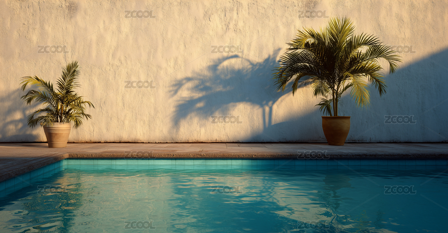 阳光泳池与盆栽棕榈