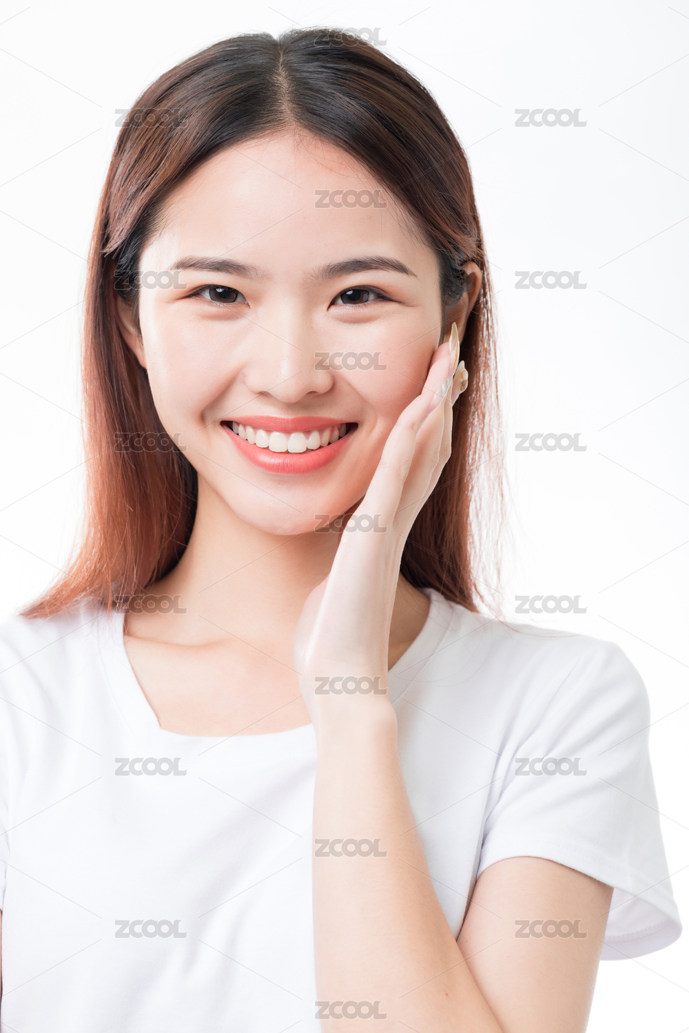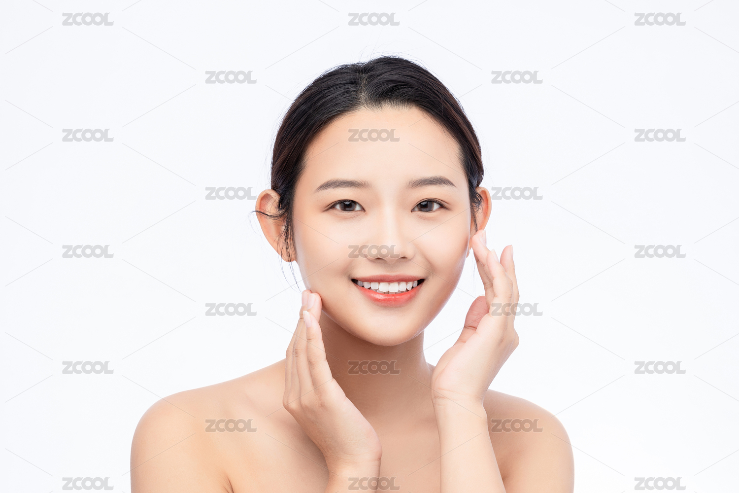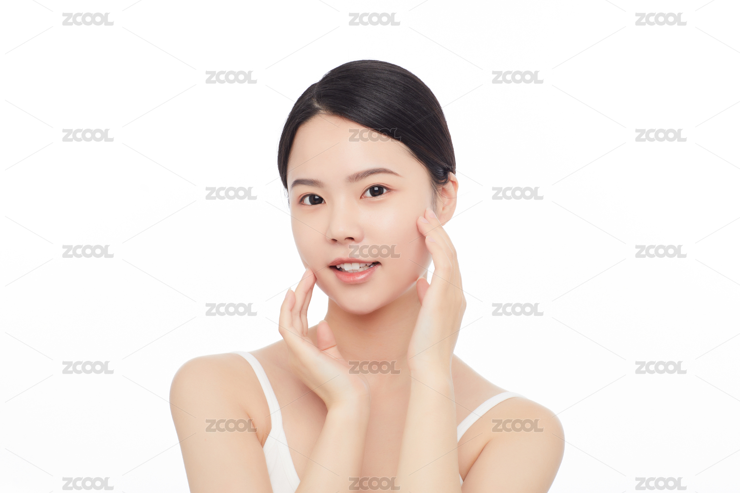 东方年轻女性双手抚摸脸颊