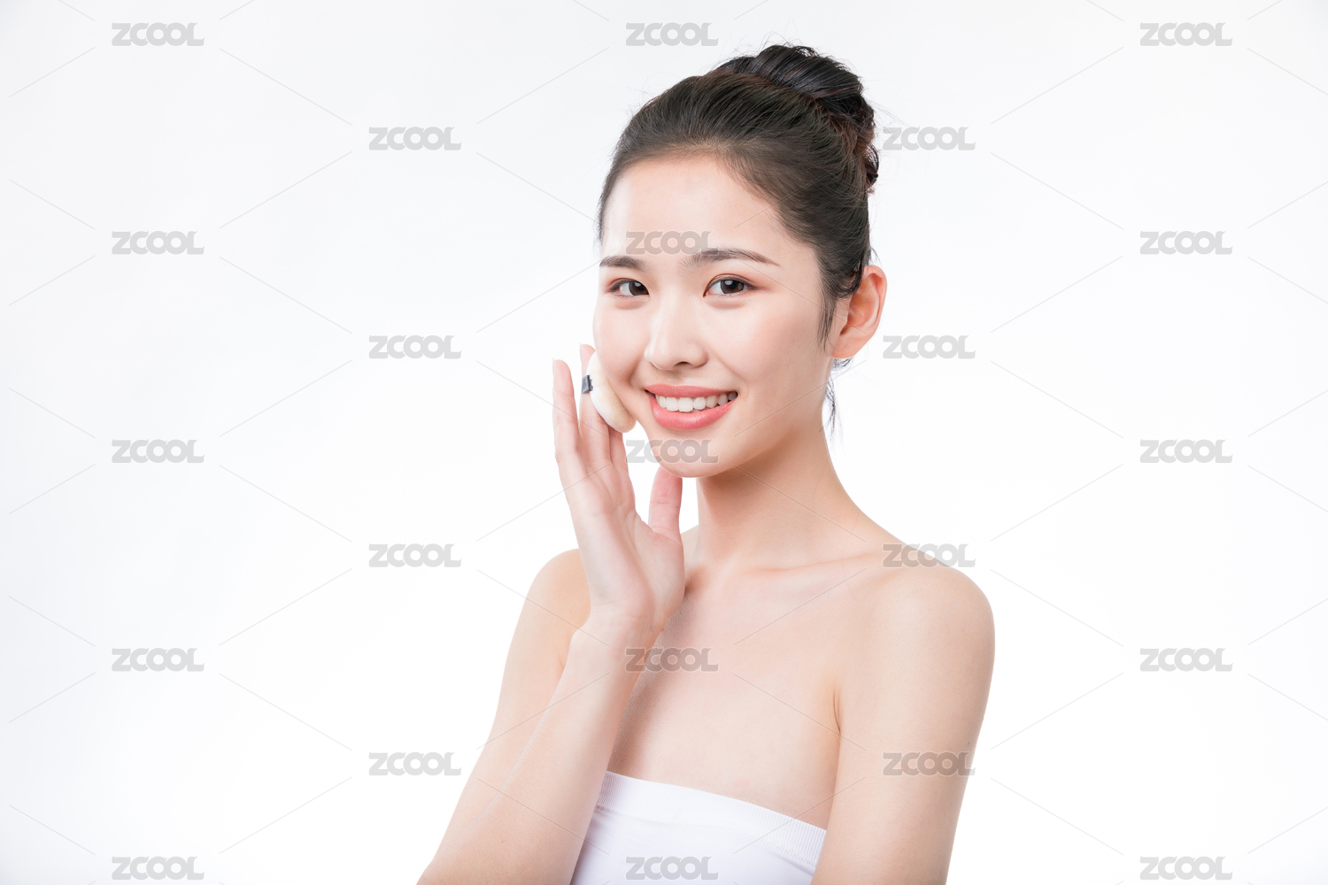 白色背景里正在化妆的亚洲美女