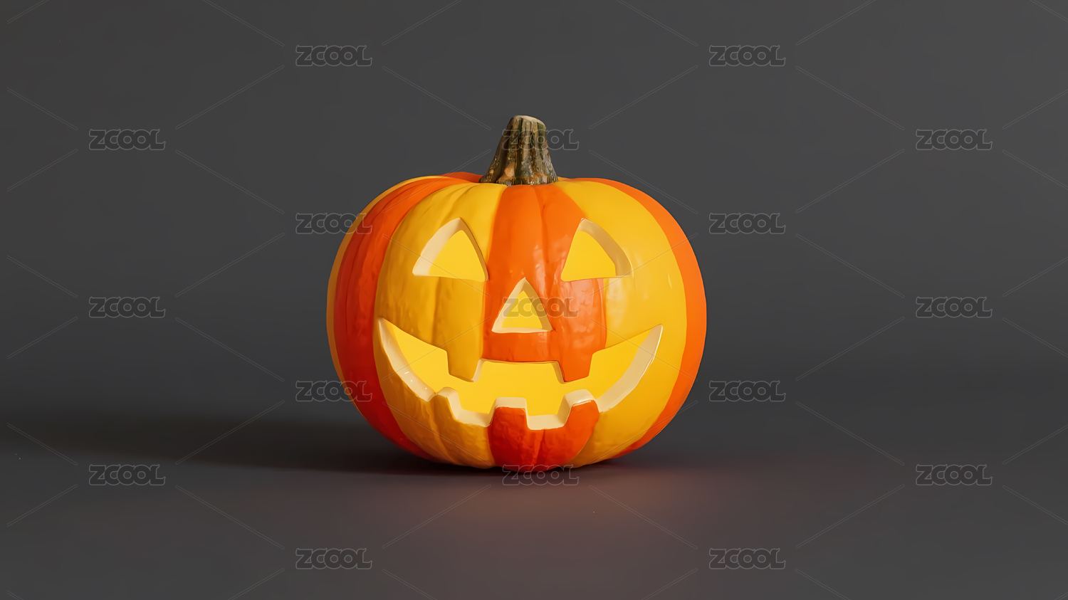 万圣节节日主题鬼脸南瓜灯放在黑色背景上