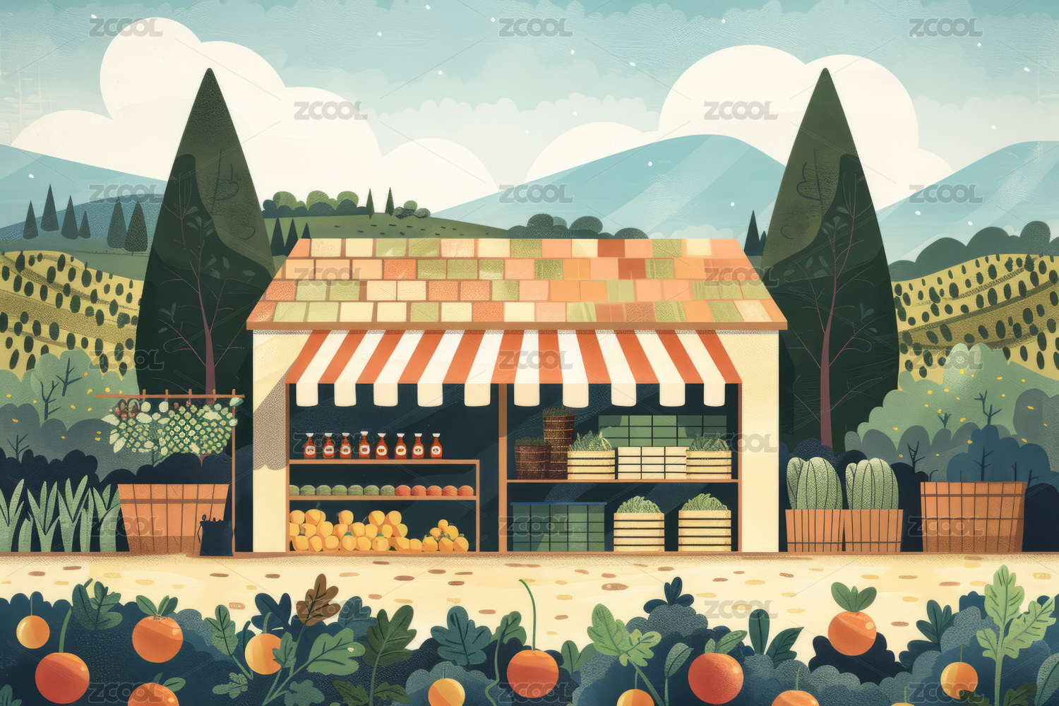 水果摊,绿色,果园,橙子,菠萝,香蕉,苹果,果树,木箱,花盆