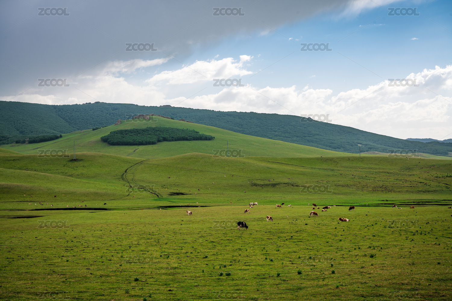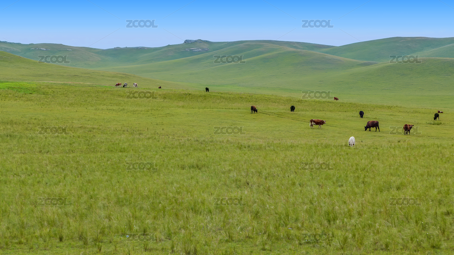 中国内蒙古夏季呼伦贝尔大草原牛群