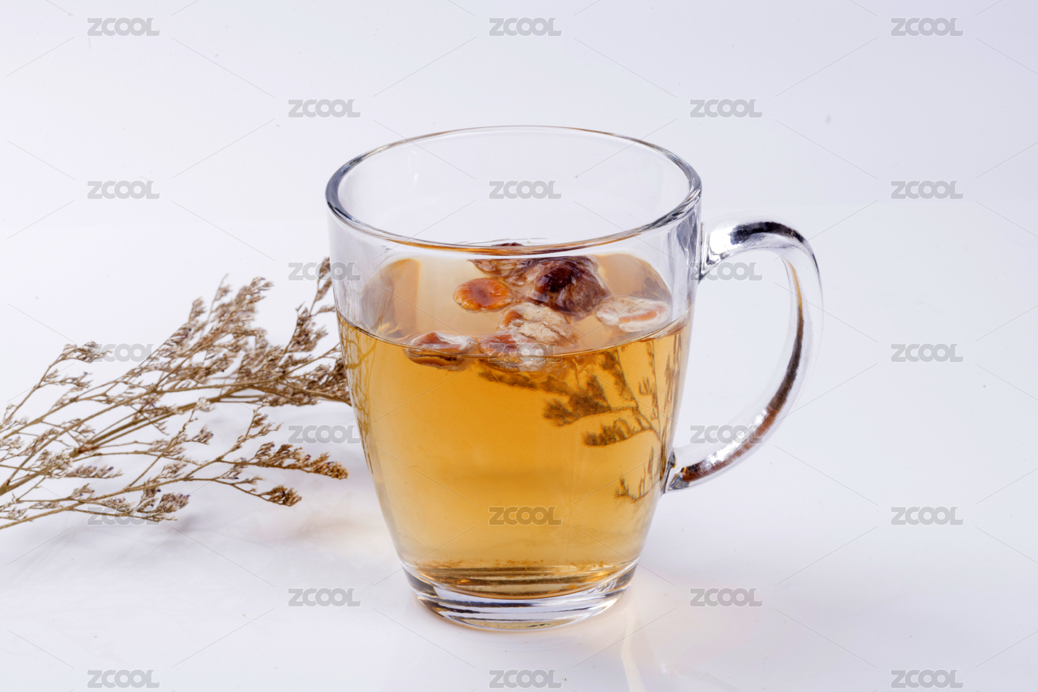 桌面上的杯子里的甘甜可口的赶黄草茶