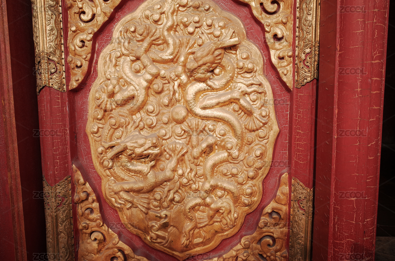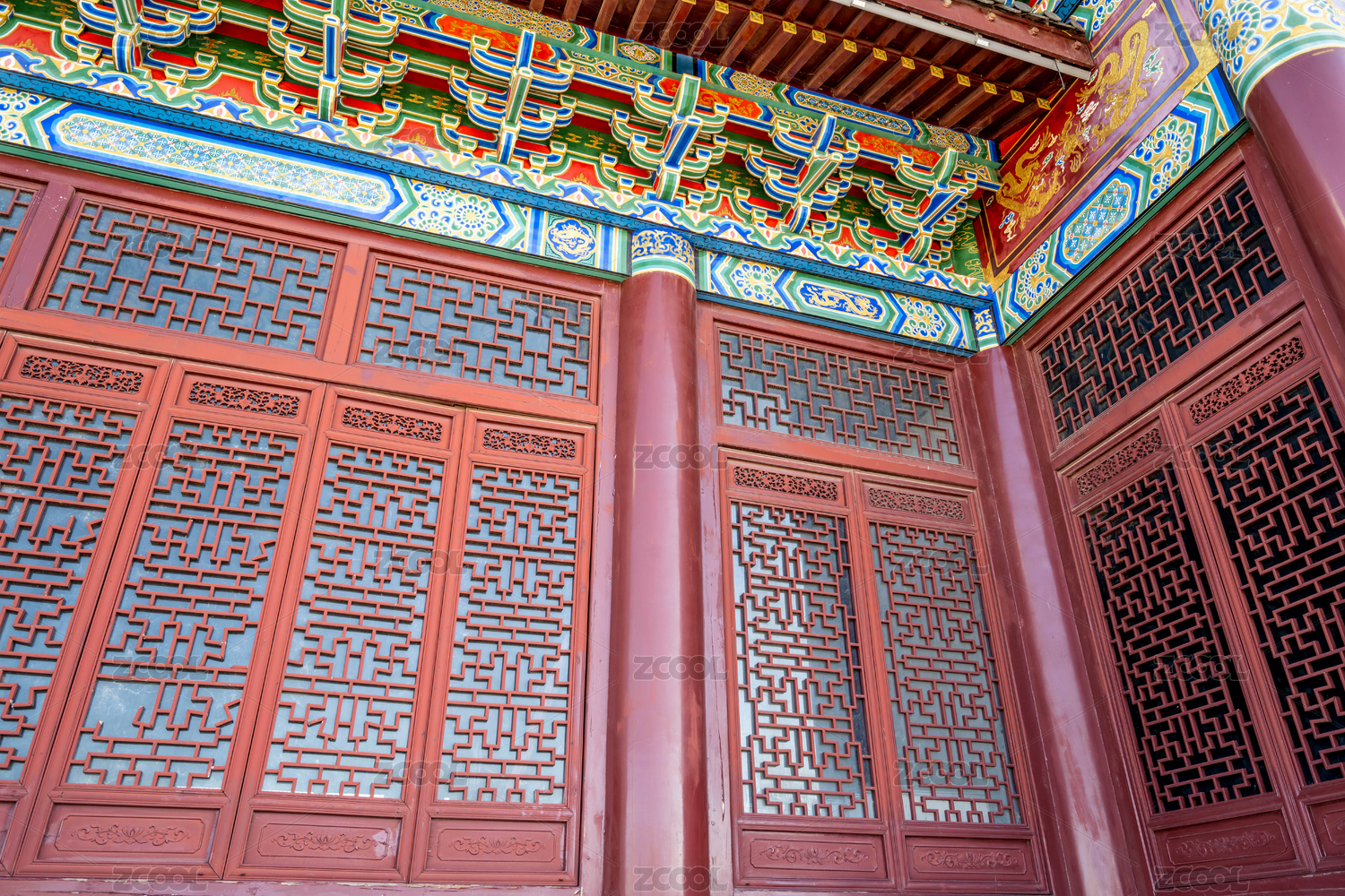 江西省南昌市景点滕王阁中式建筑红色木门局部特写