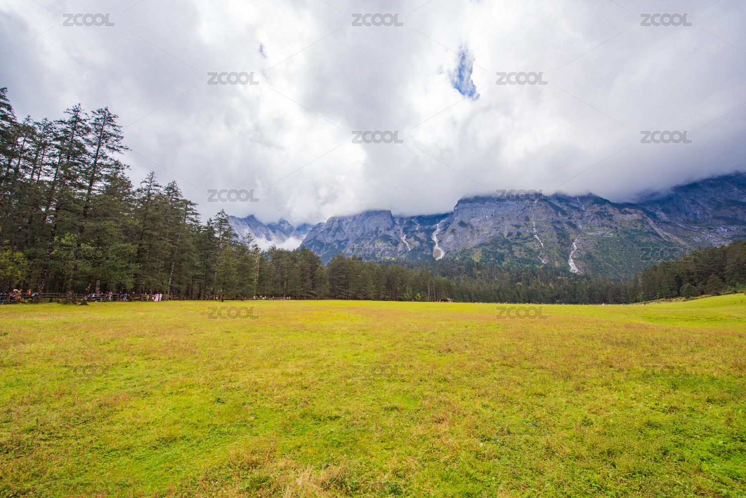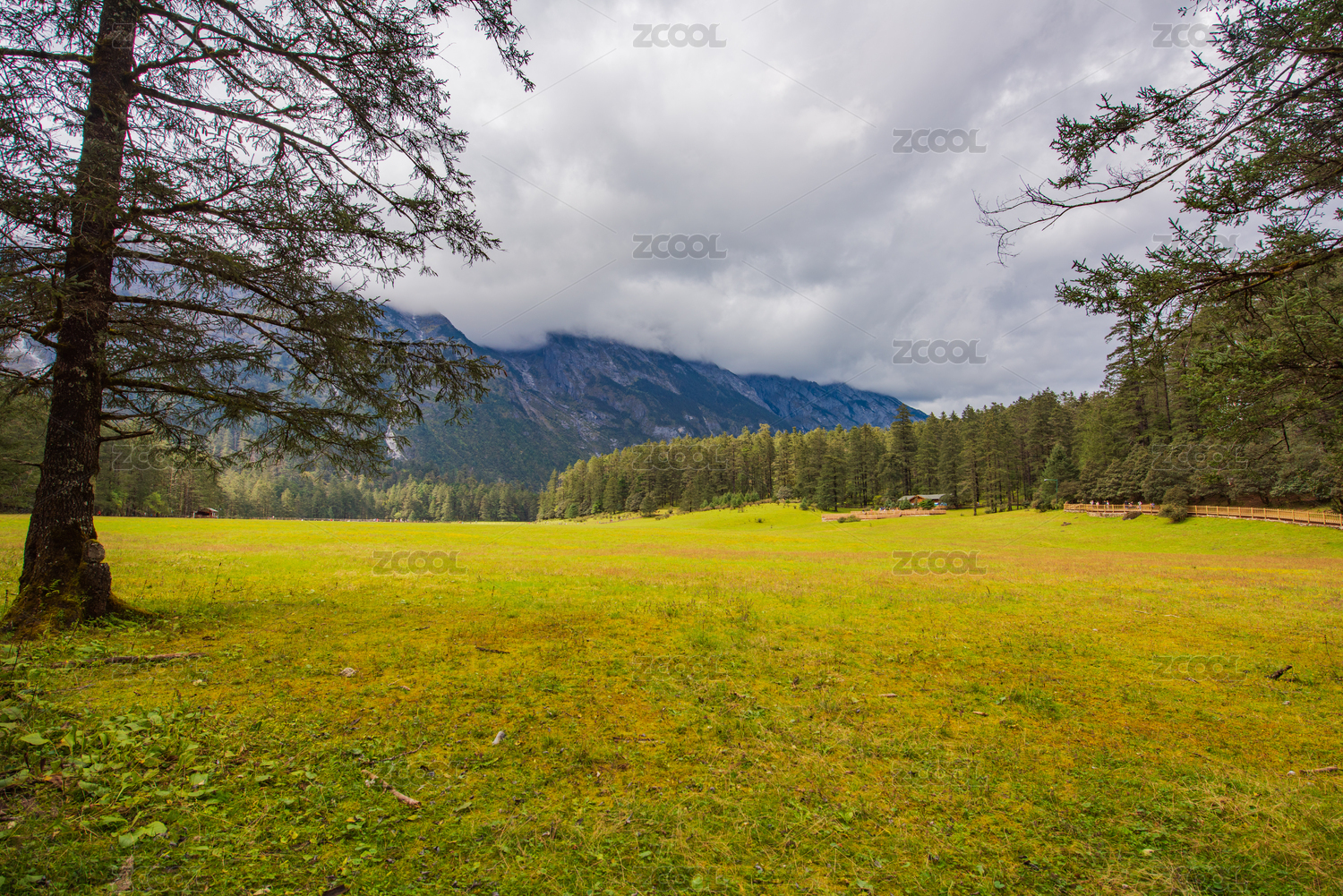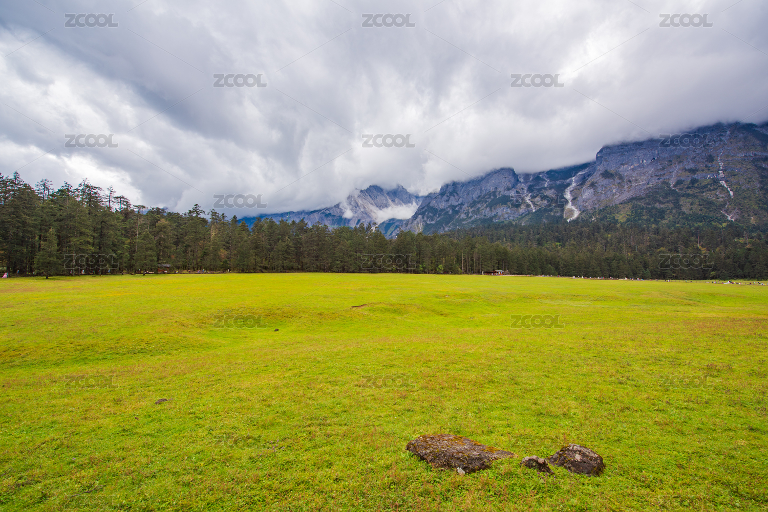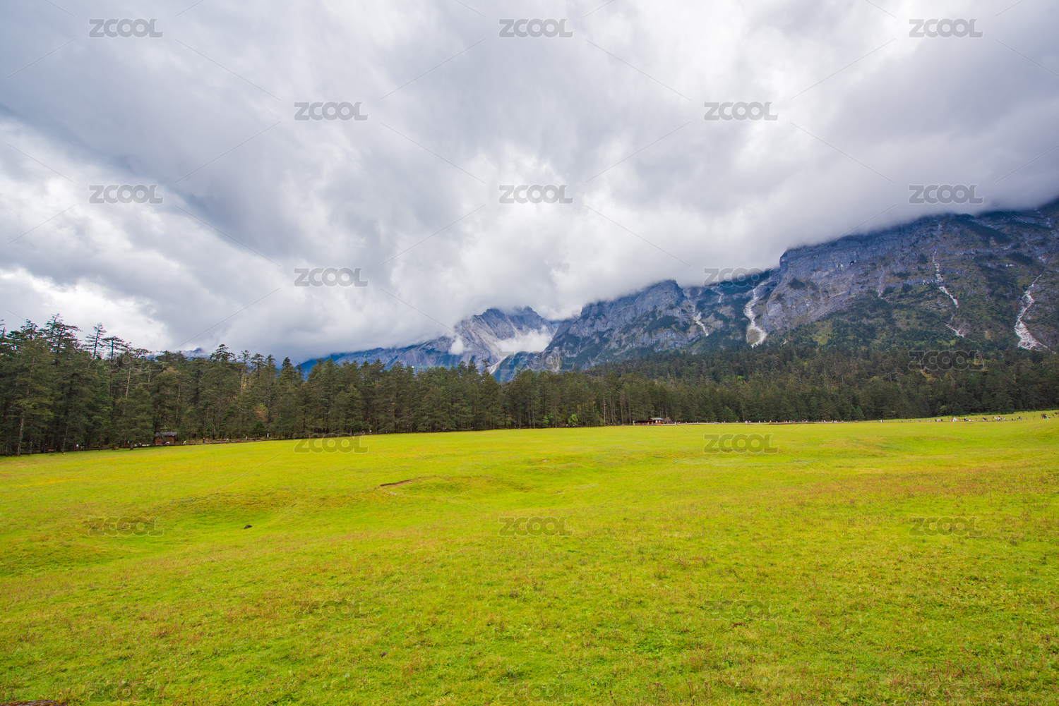 云南,丽江,玉龙雪山,云杉坪,高原,高山,草地,草原,平坦,阴天