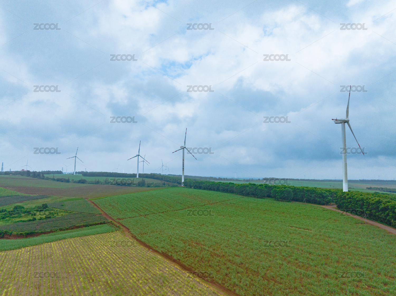 广东湛江徐闻县波罗的海蓝天白云下的风力发