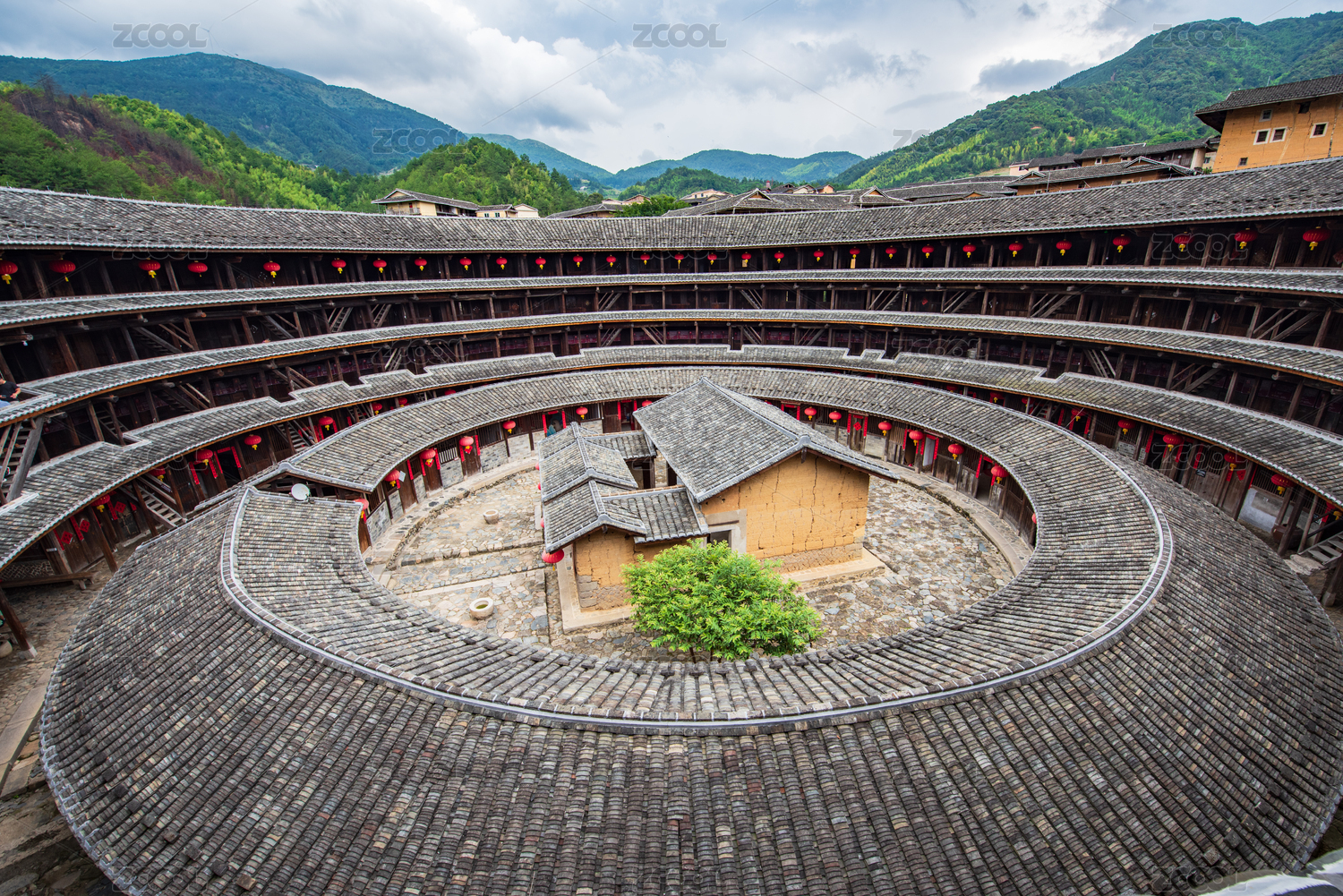 福建,龙岩,永定区,福建土楼,土楼,永定土楼,圆楼,圆形,古建筑,瓦