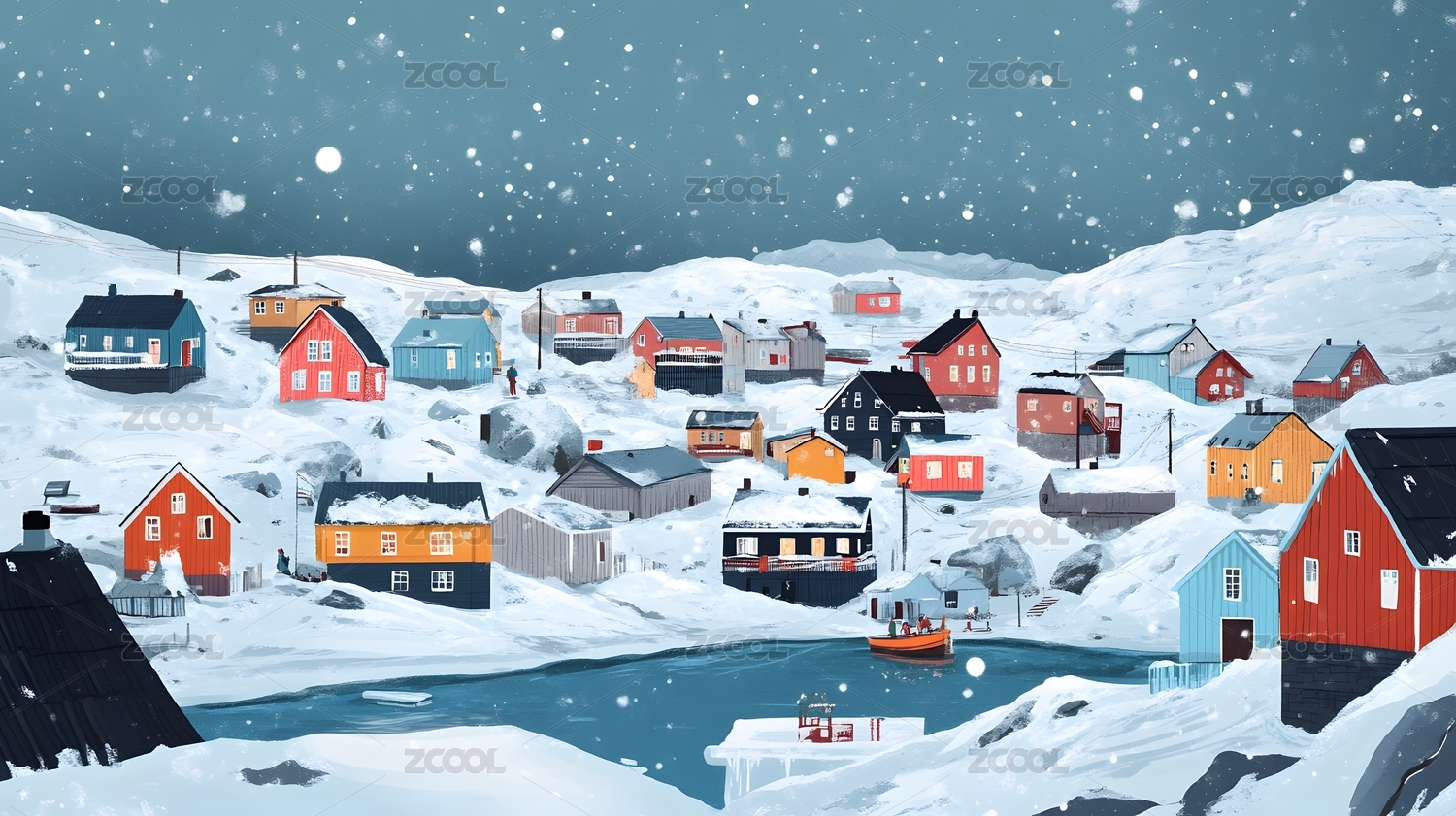 雪地,房屋,彩色,建筑,冬天,寒冷,北极,山脉,天空,蓝色