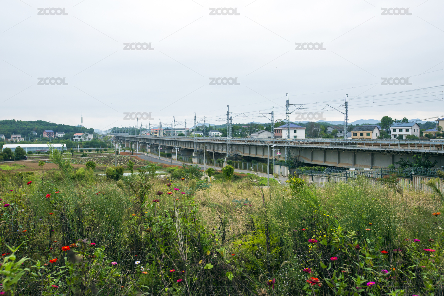 架设在农村的高铁线路