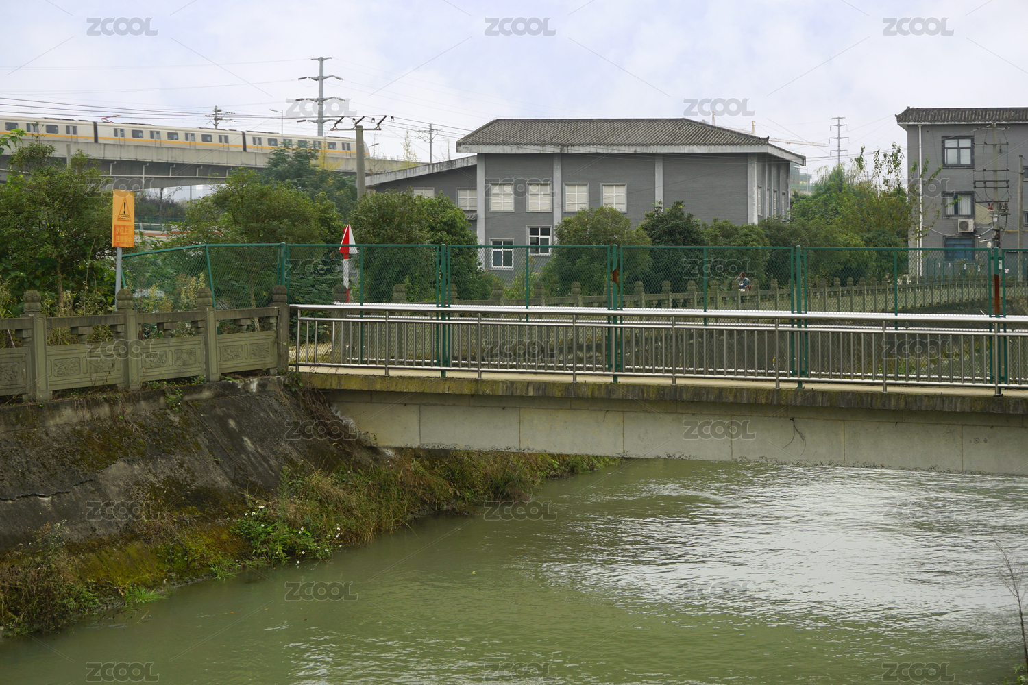 穿过桥梁河道的高铁
