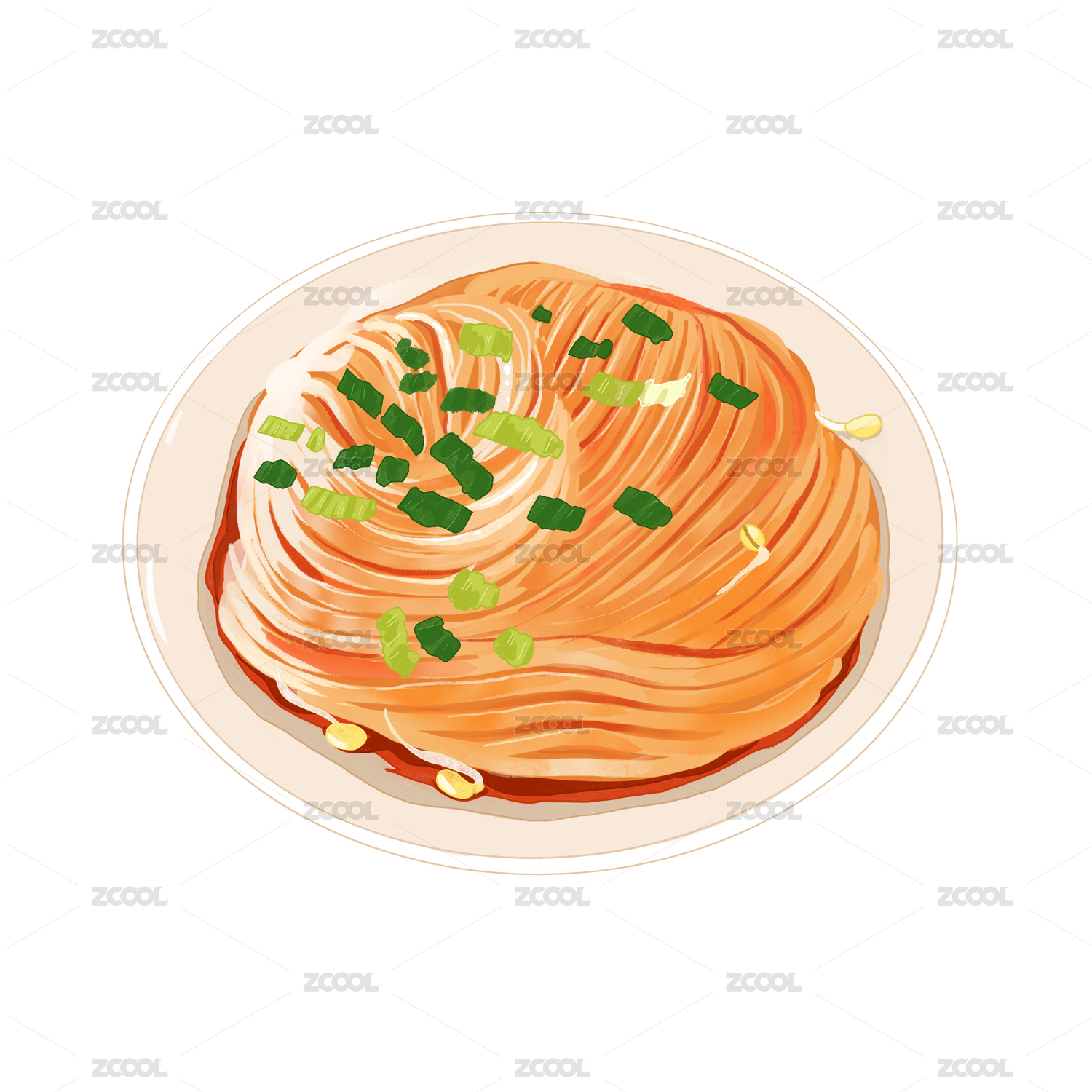 筷子挑起一碗诱人的米粉面条干拌面小吃手绘