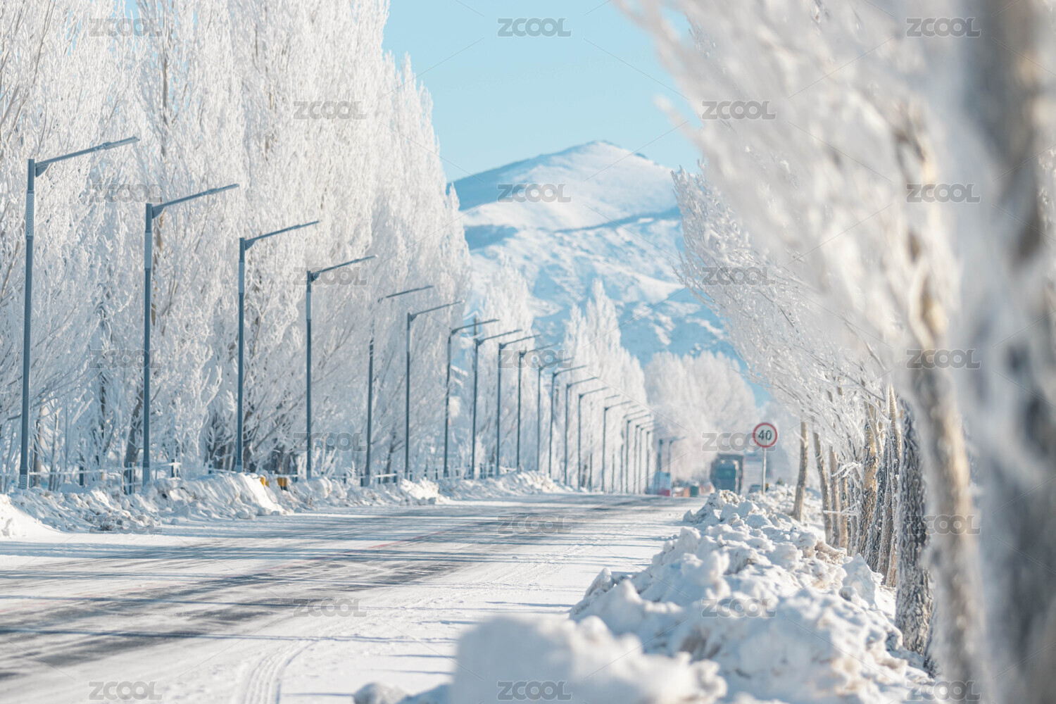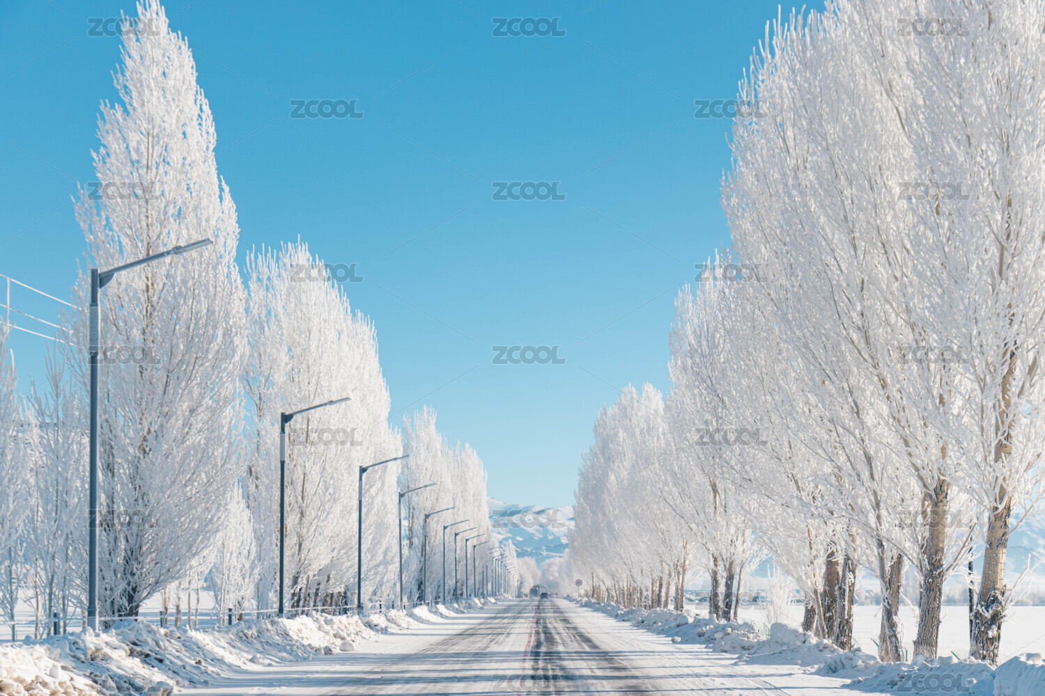 冬天里白雪覆盖的行道树