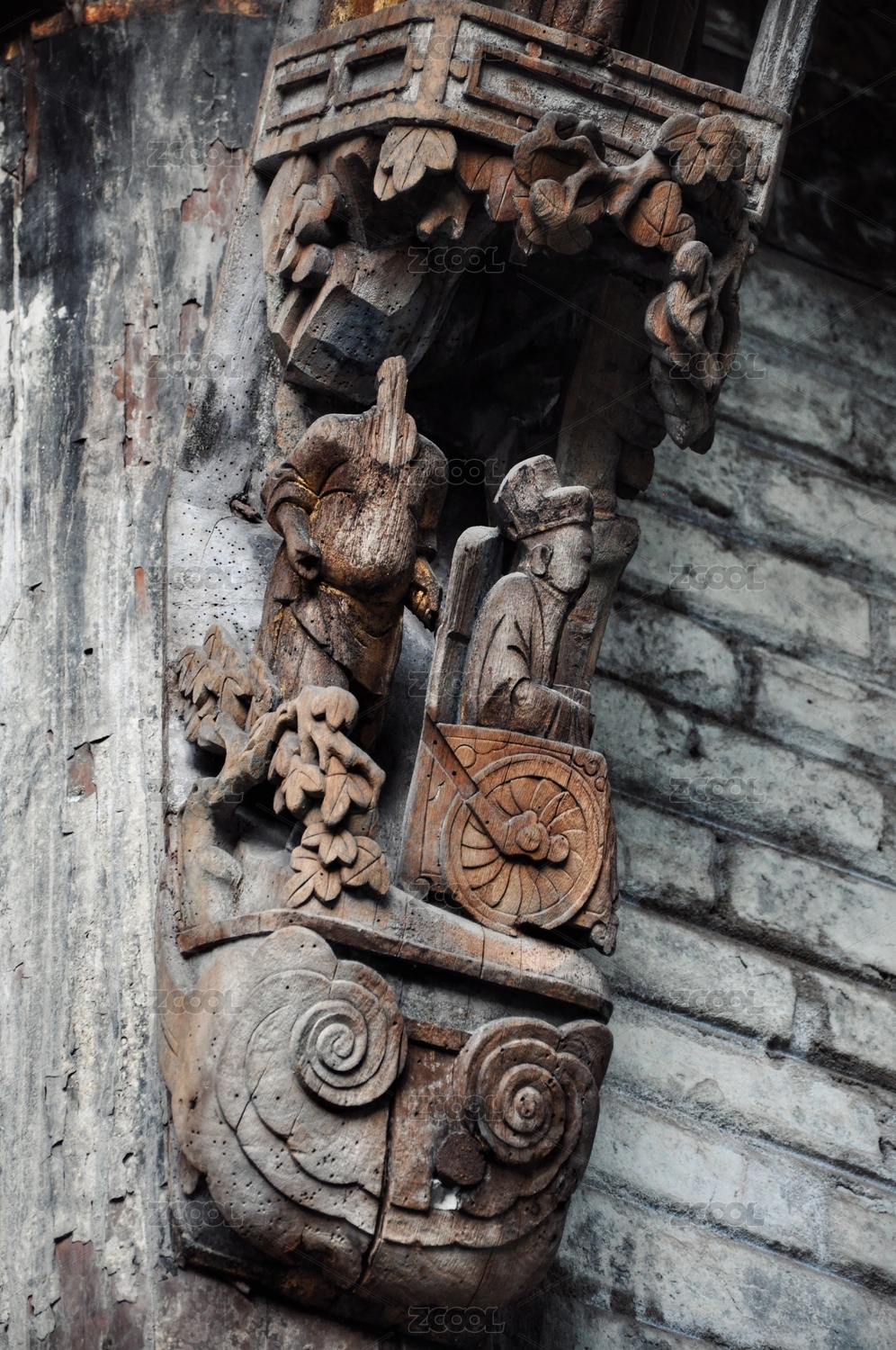 浙江东阳卢宅建筑细节,牛腿雀替粱架马头墙