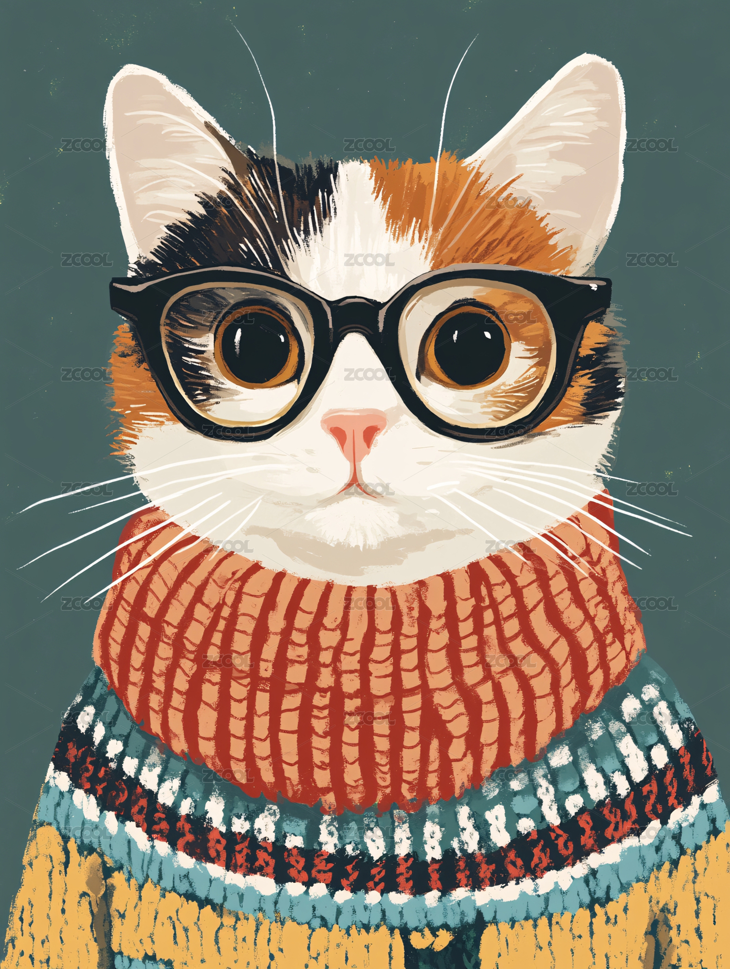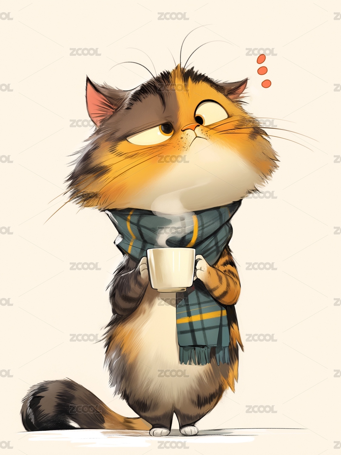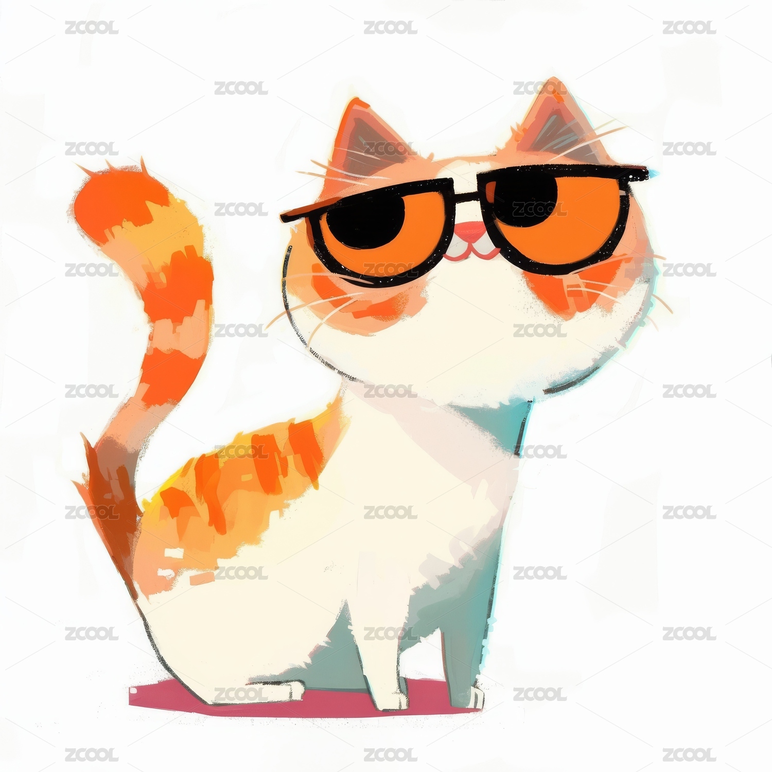 复古风格时尚惬意戴着墨镜喝咖啡的小猫咪