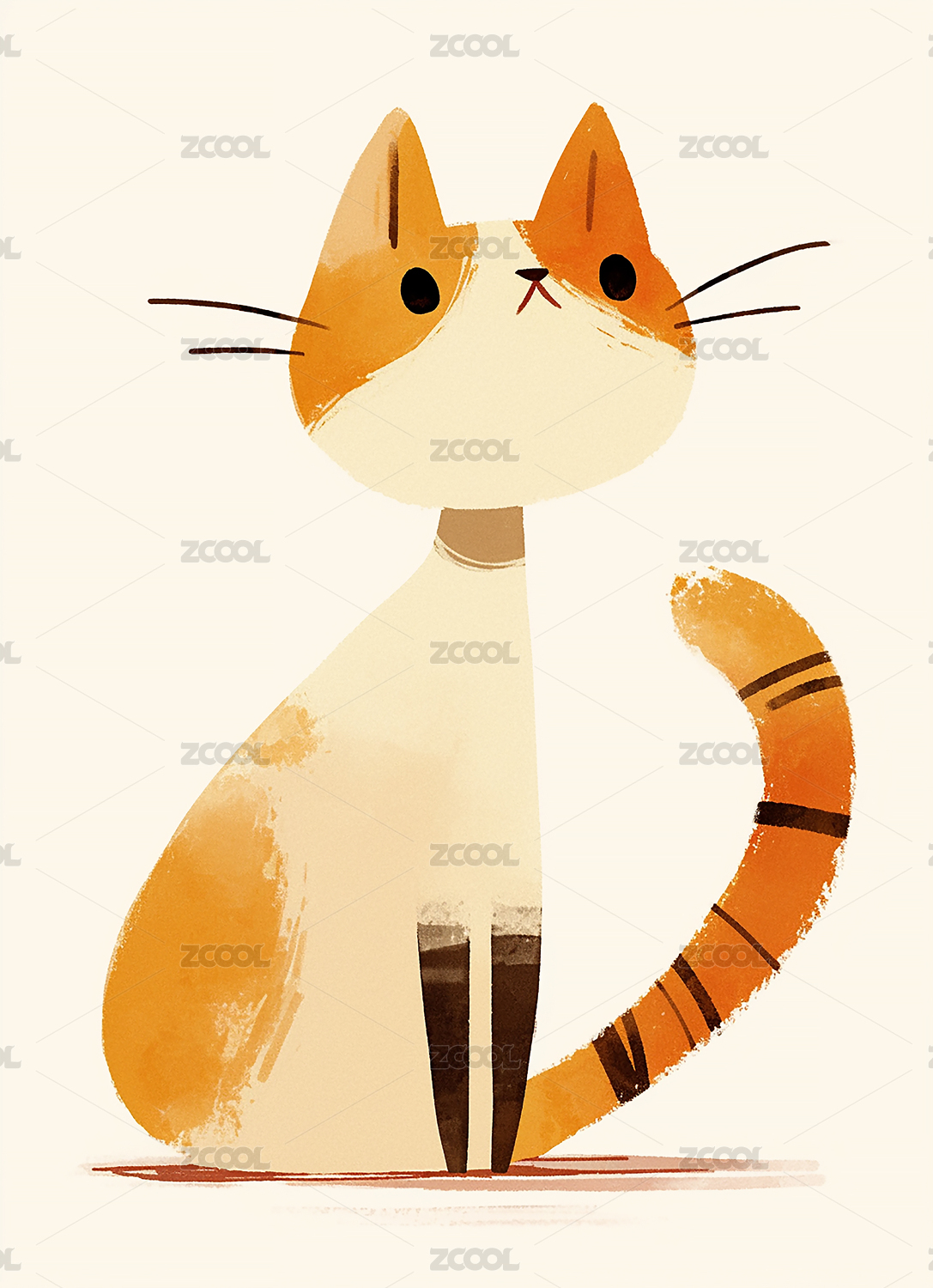 卡通手绘线条感极简风小猫微笑表情壁纸插画