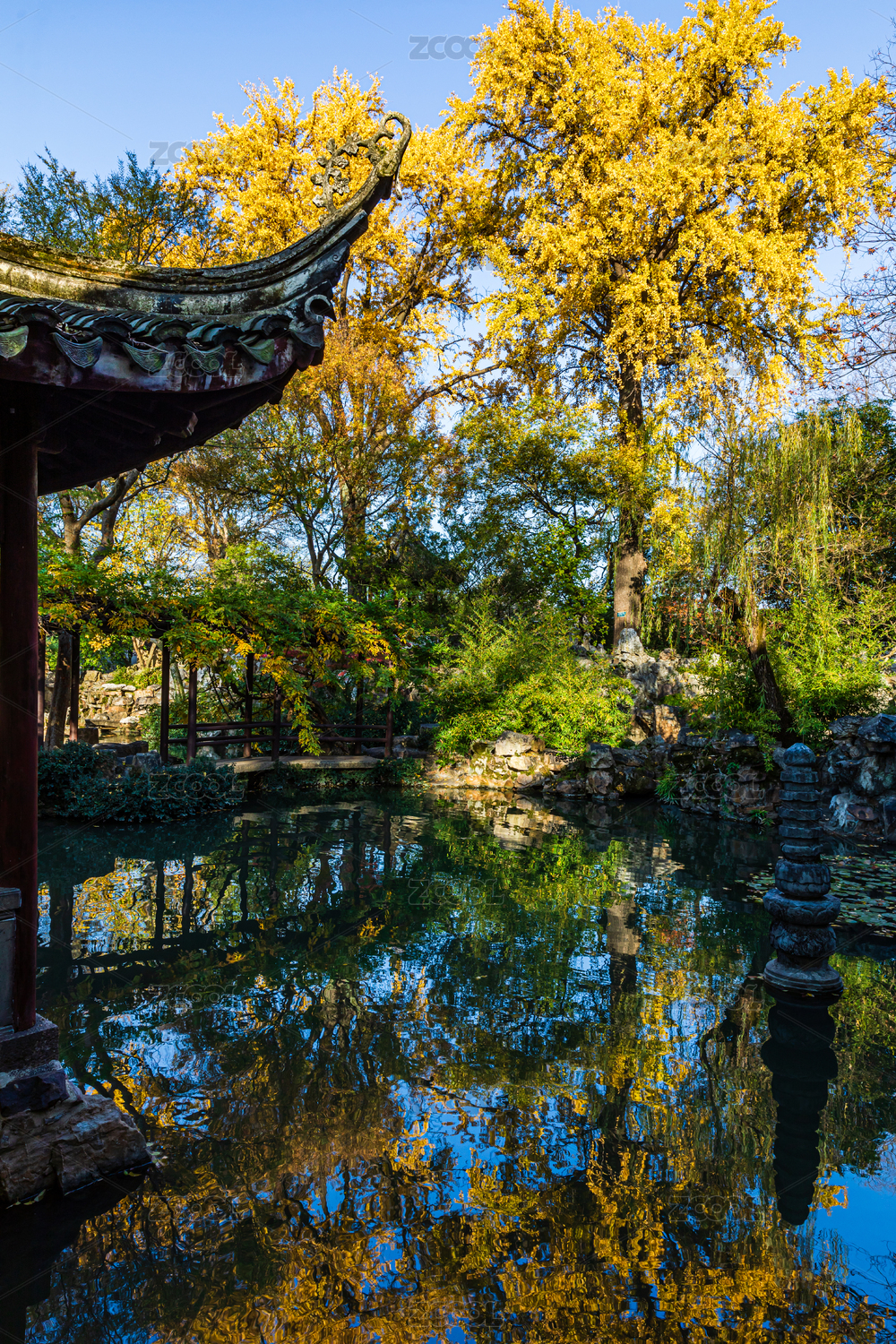 中国,留园,HENP202131,江苏,秋天,银杏,苏州,城市,园林,旅行