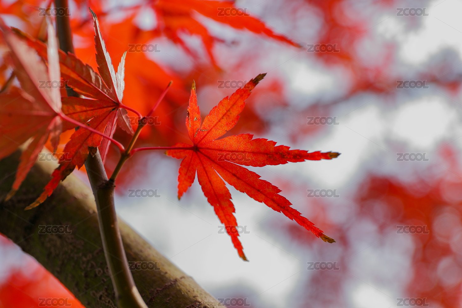 红枫,叶,树干,红色,逆光,选择对焦,特写,秋天