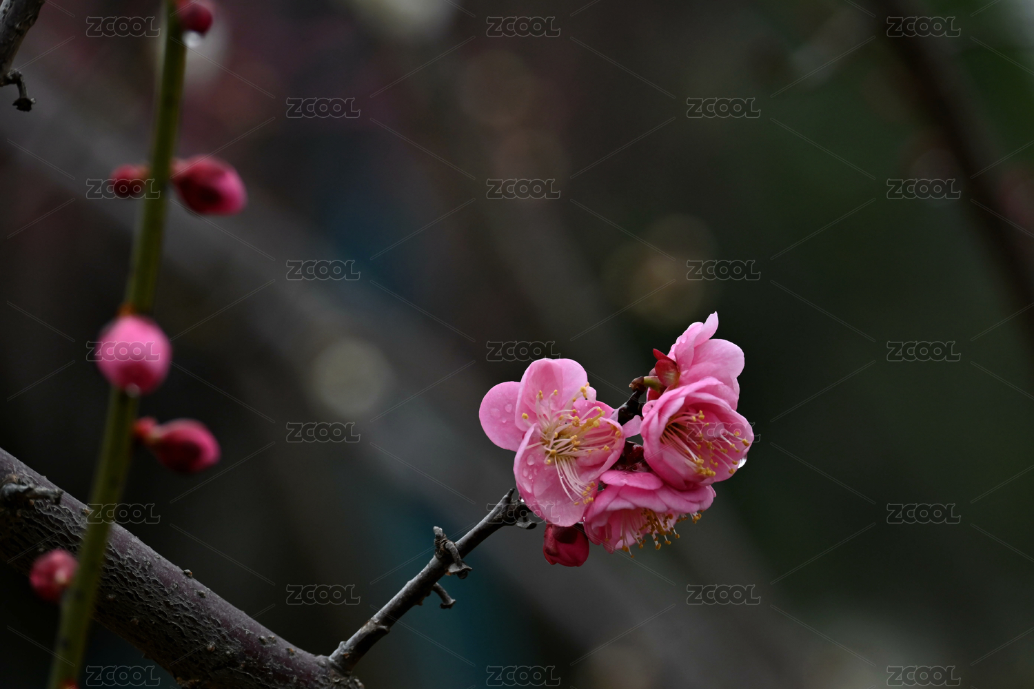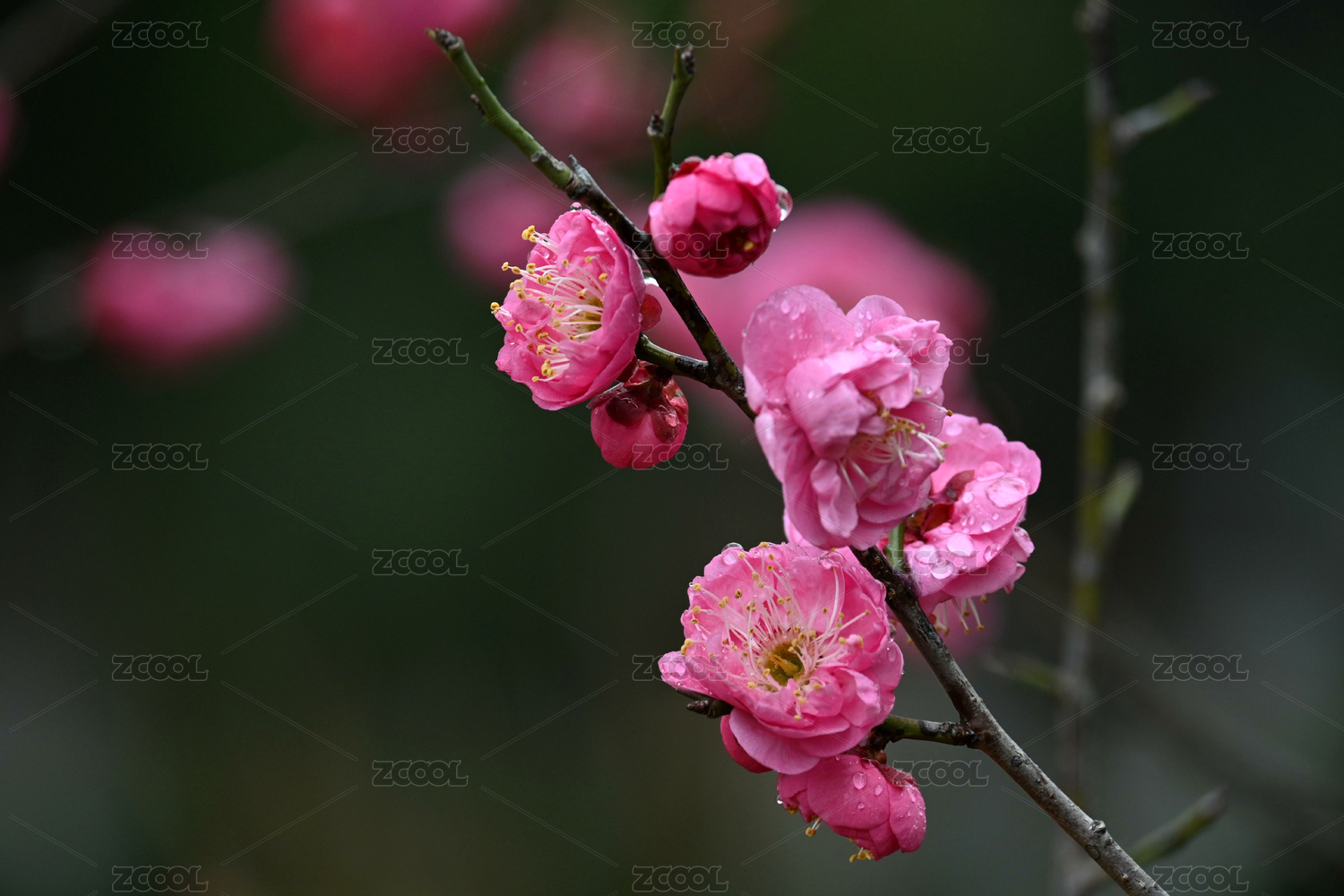 雨中粉色梅花特写