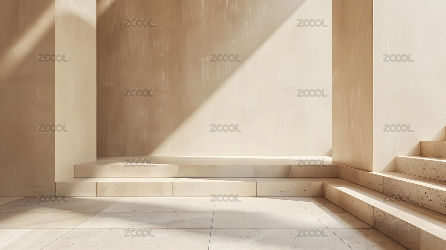 暖阳映照下的现代极简室内空间
