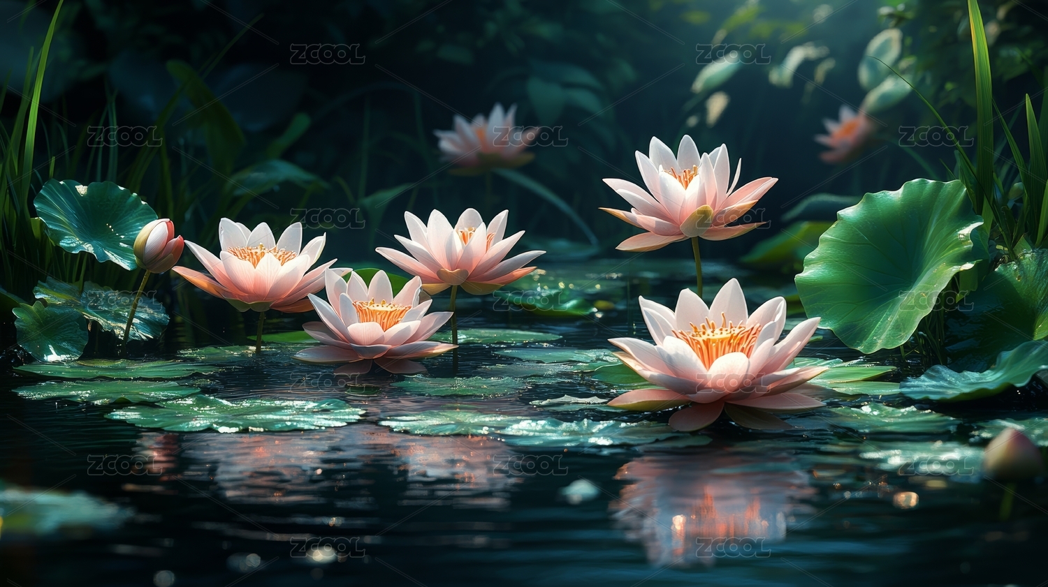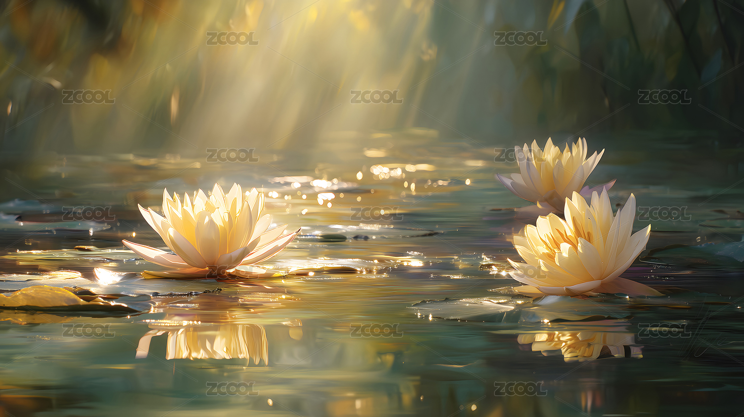 夏日荷花荷叶卡通小清新国风小暑节气插画