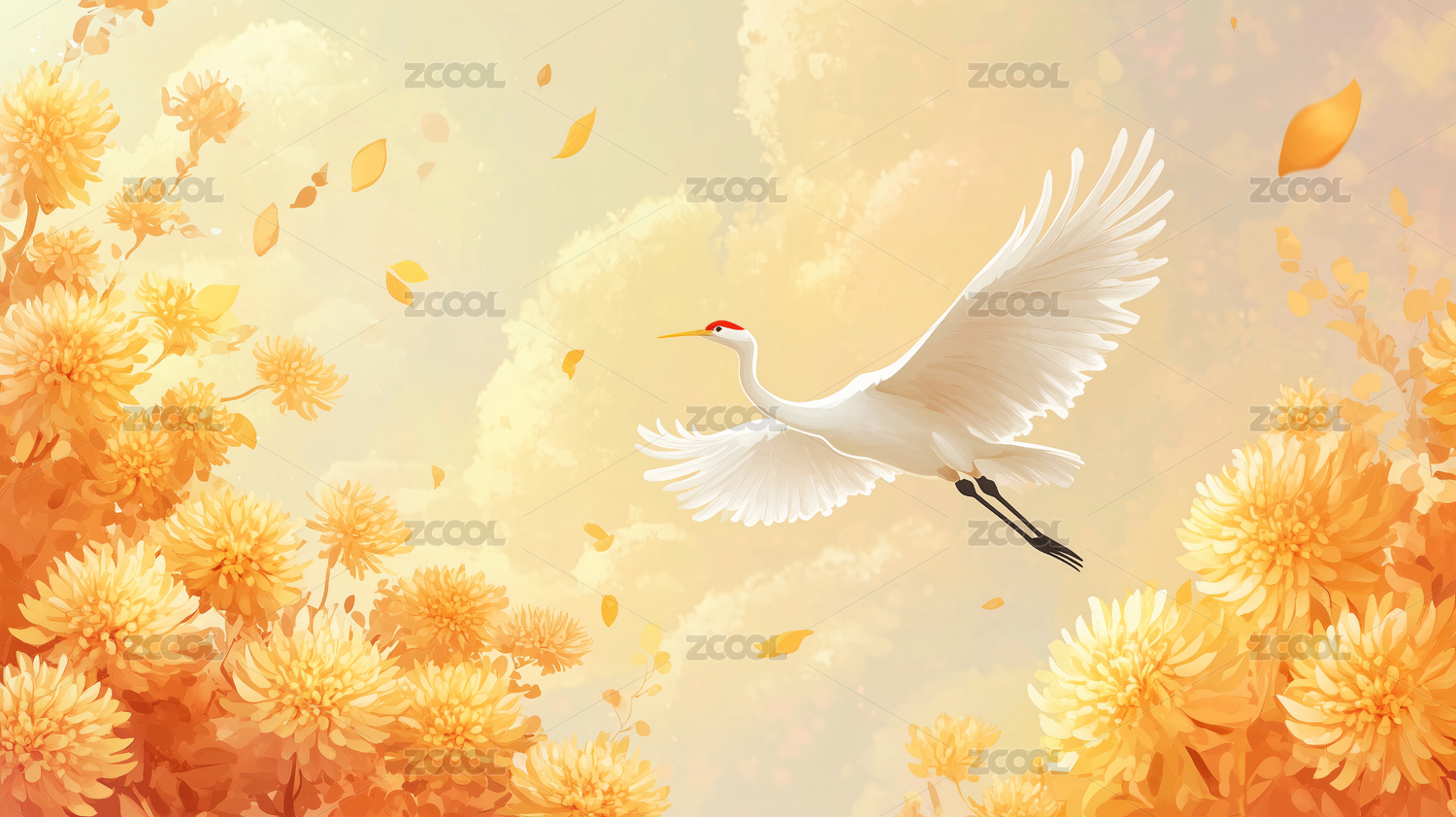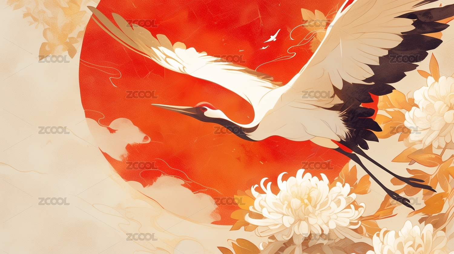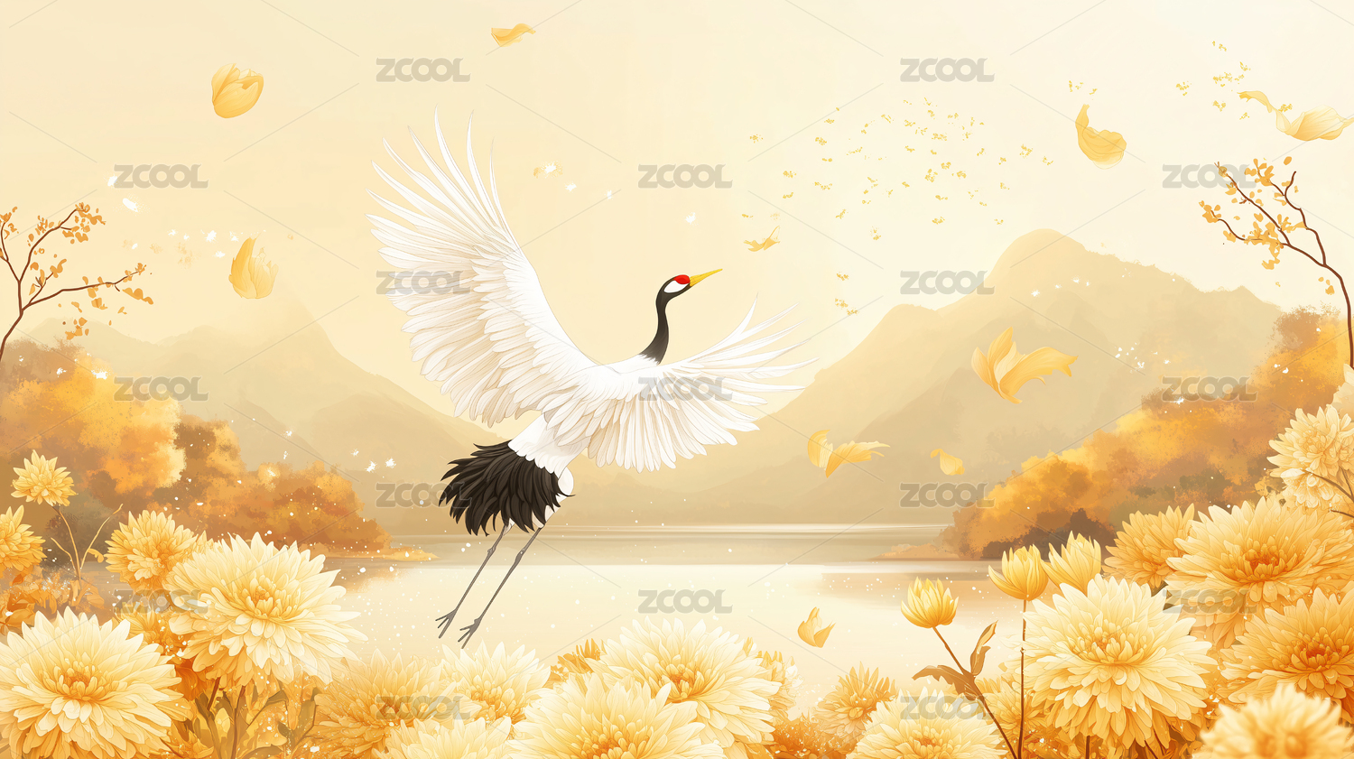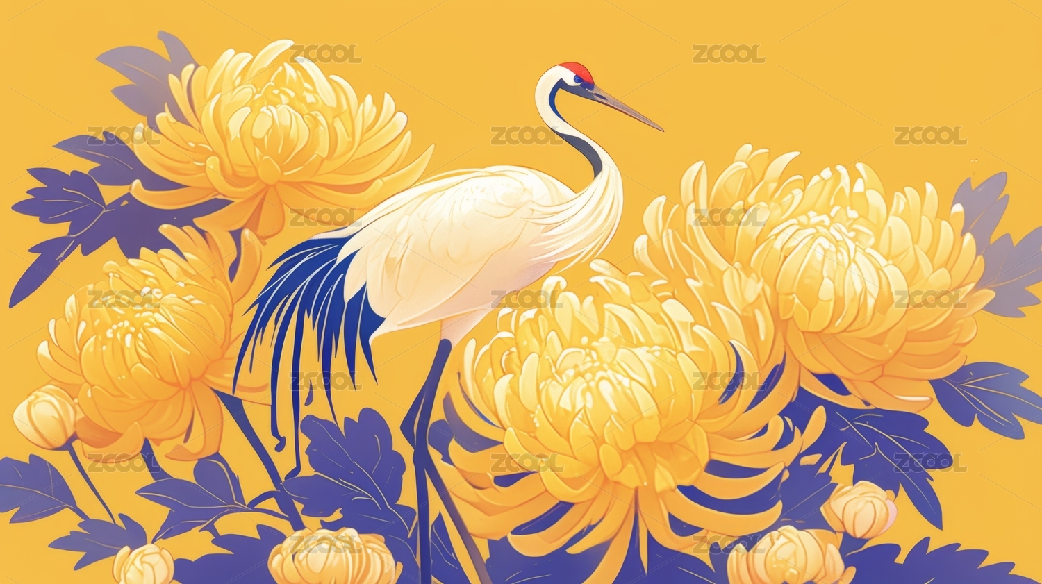 重阳节主题背景仙鹤丹顶鹤中国风国画工笔画