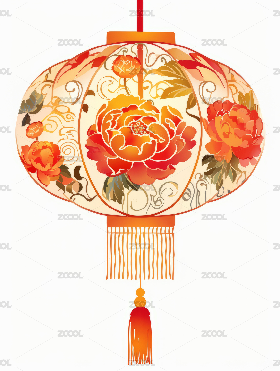 新春灯笼牡丹纹样线稿