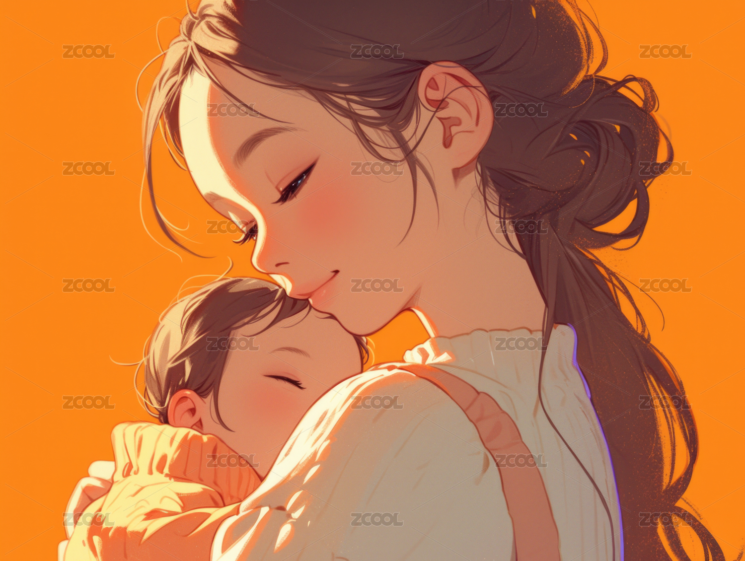 母亲节,节日,卡通,插画,人,AIGCFG02