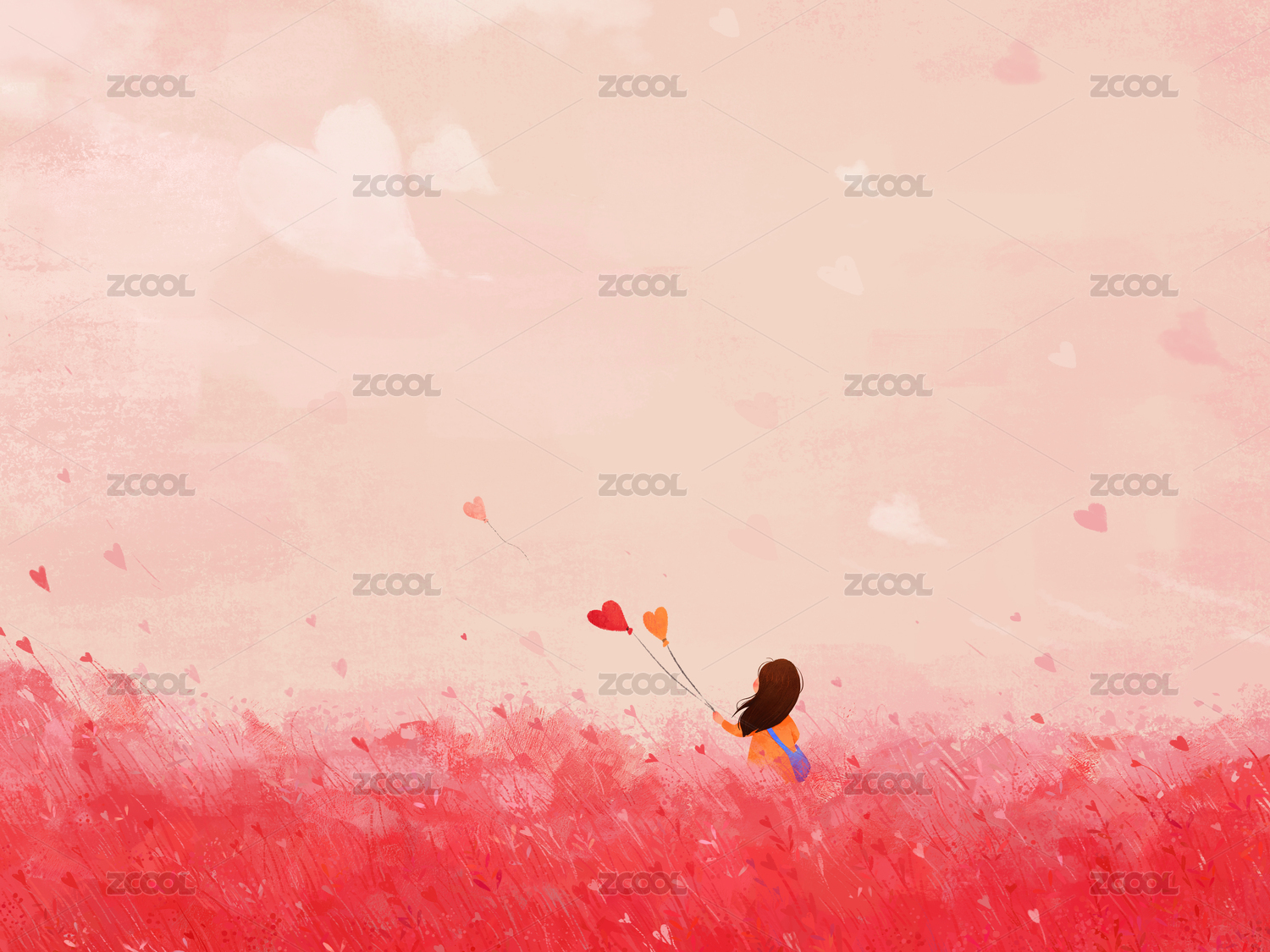 情人节,爱心,节日,女孩,人,人物,卡通,插画