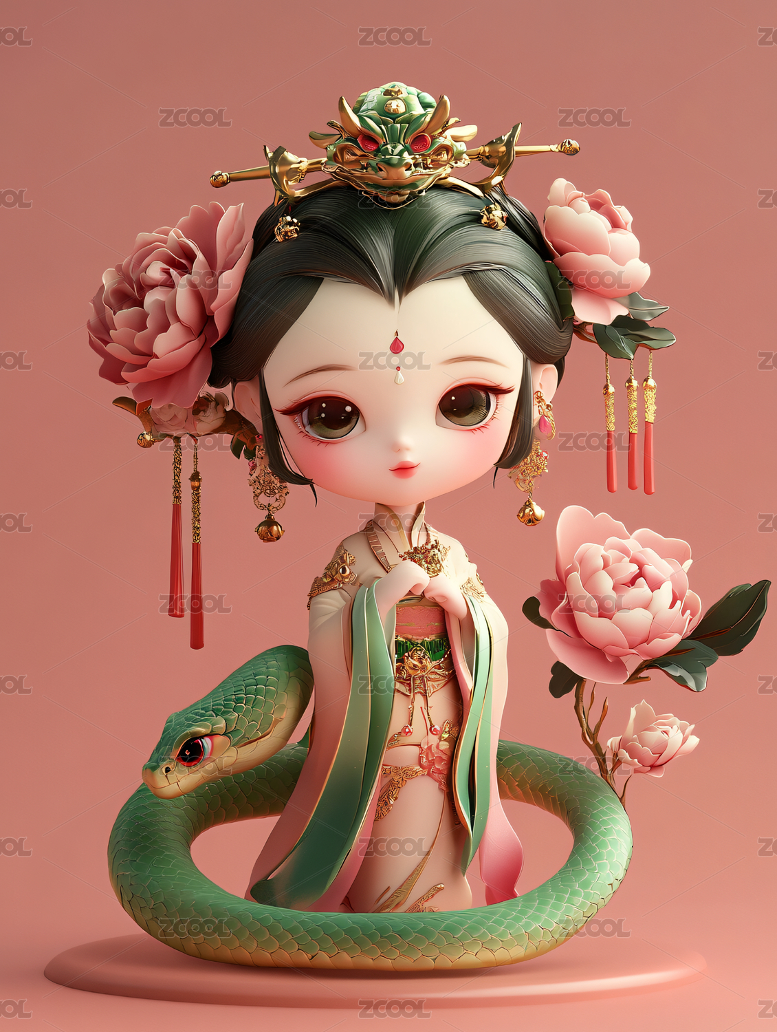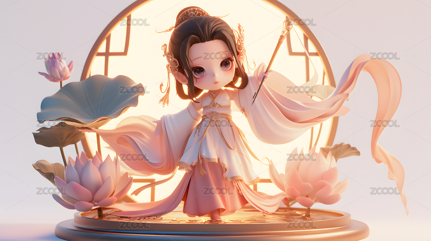 3D,国潮风,立体,中国风,美女,少女,卡通,插画