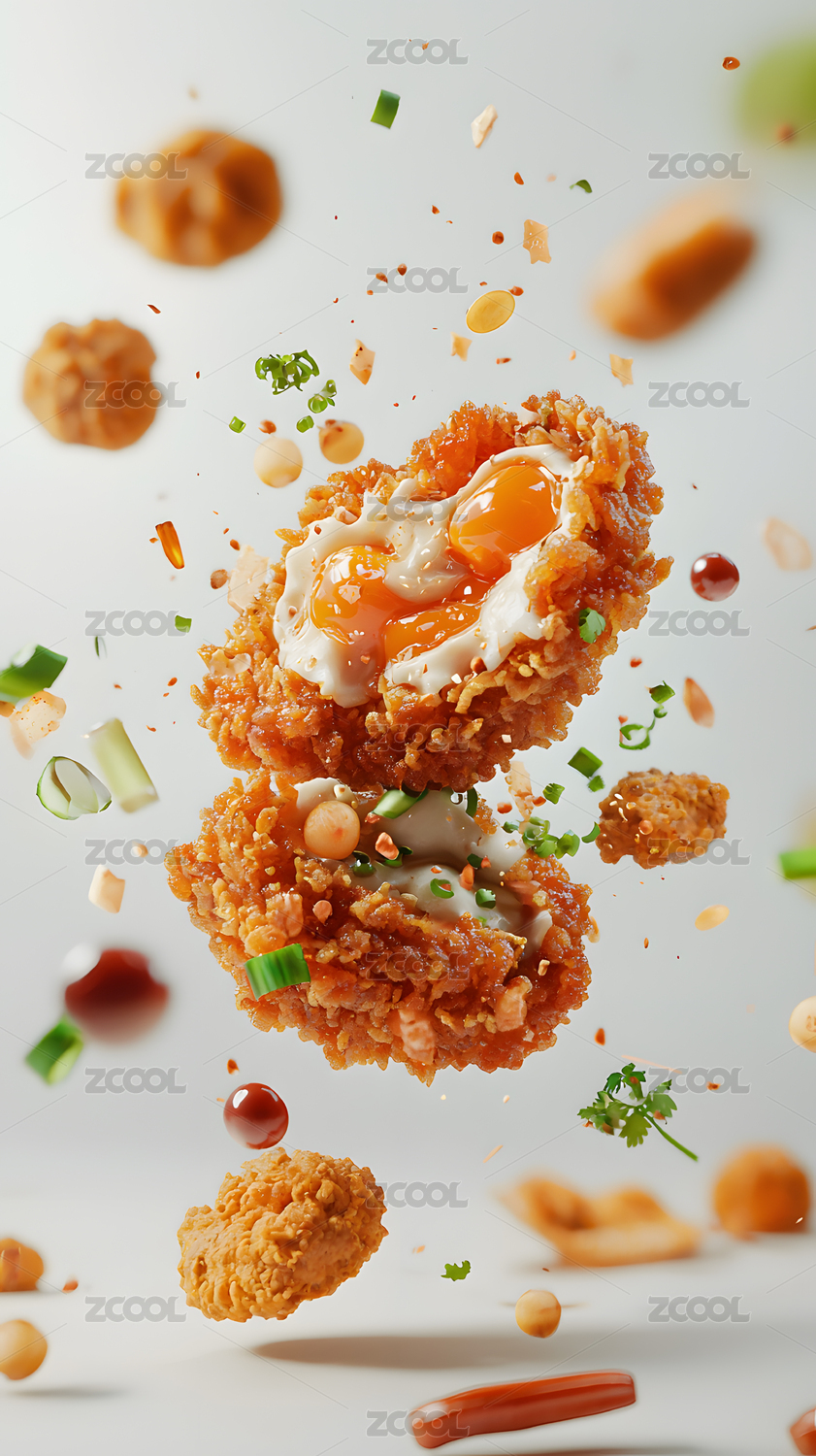 美味炸鸡块的悬浮瞬间