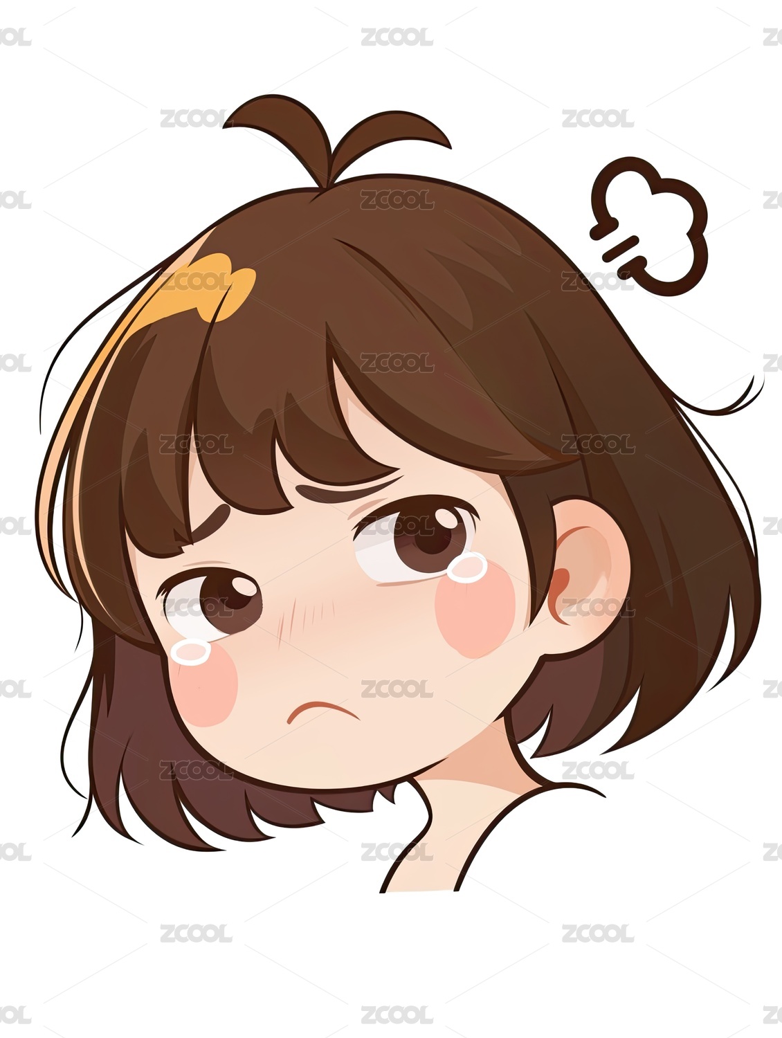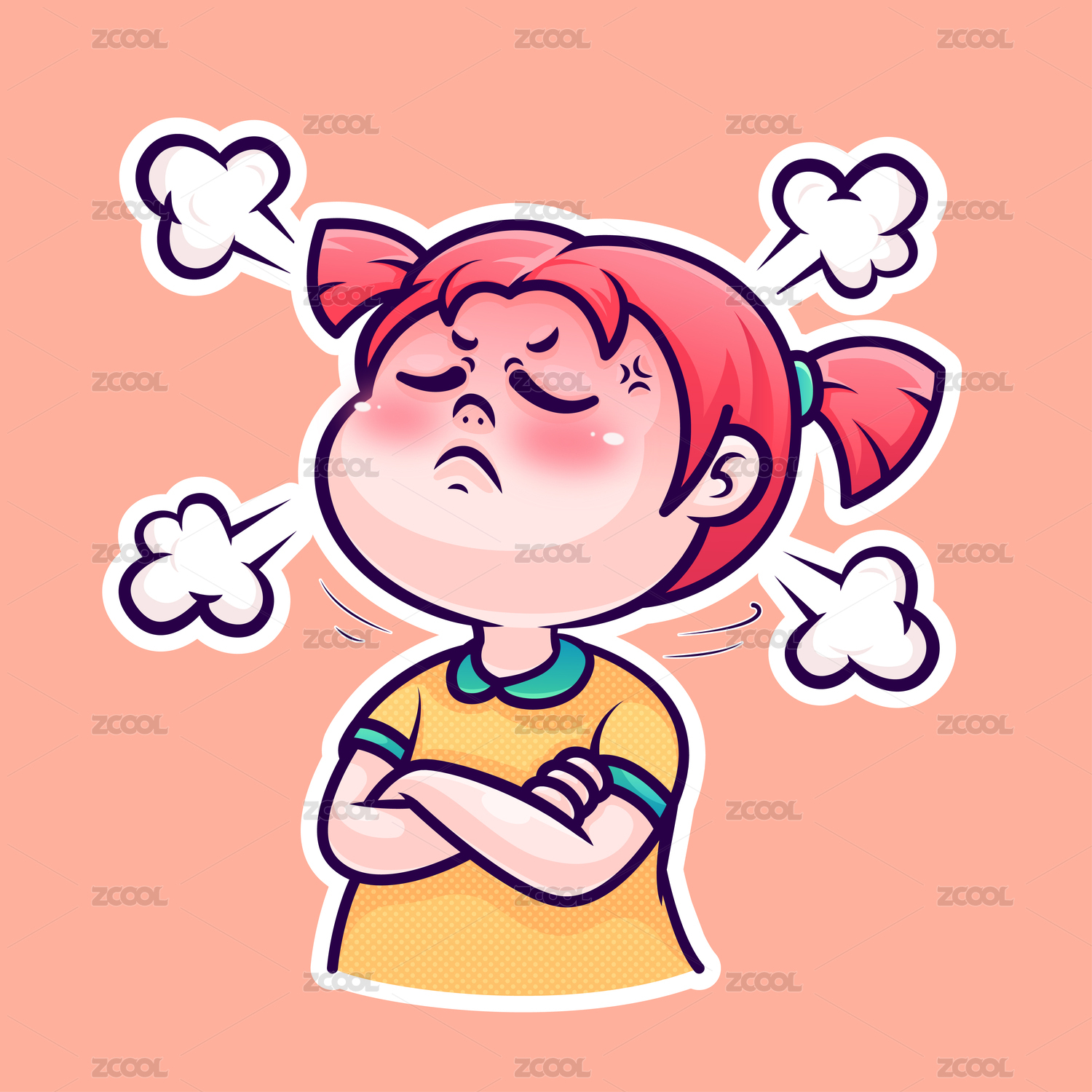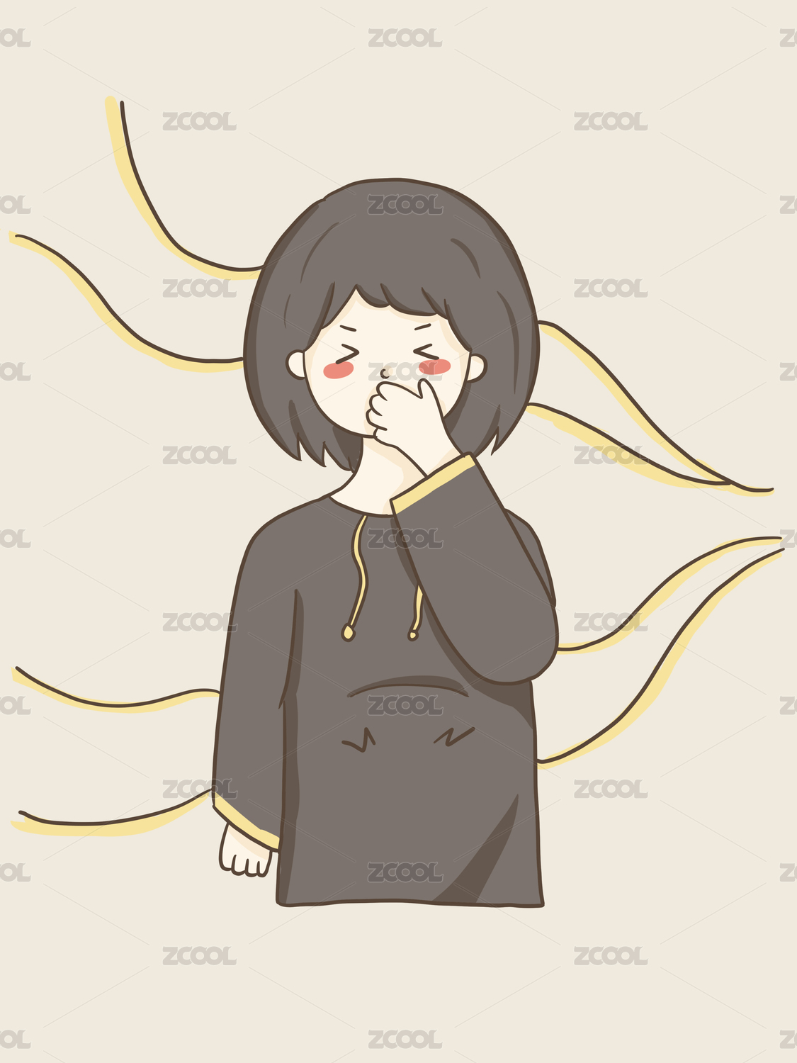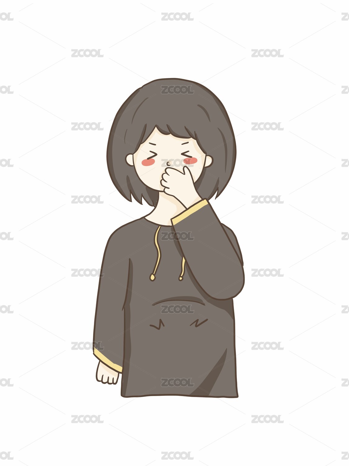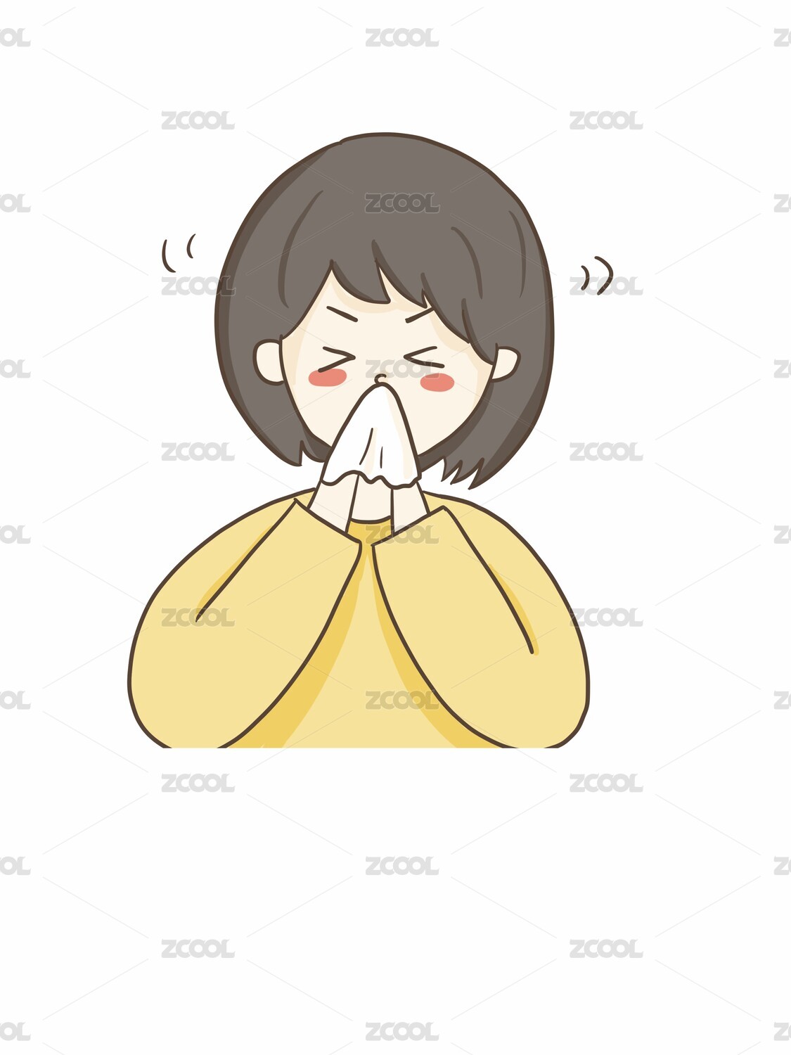 可爱的女孩生病感冒在努力擤鼻涕插画人物元