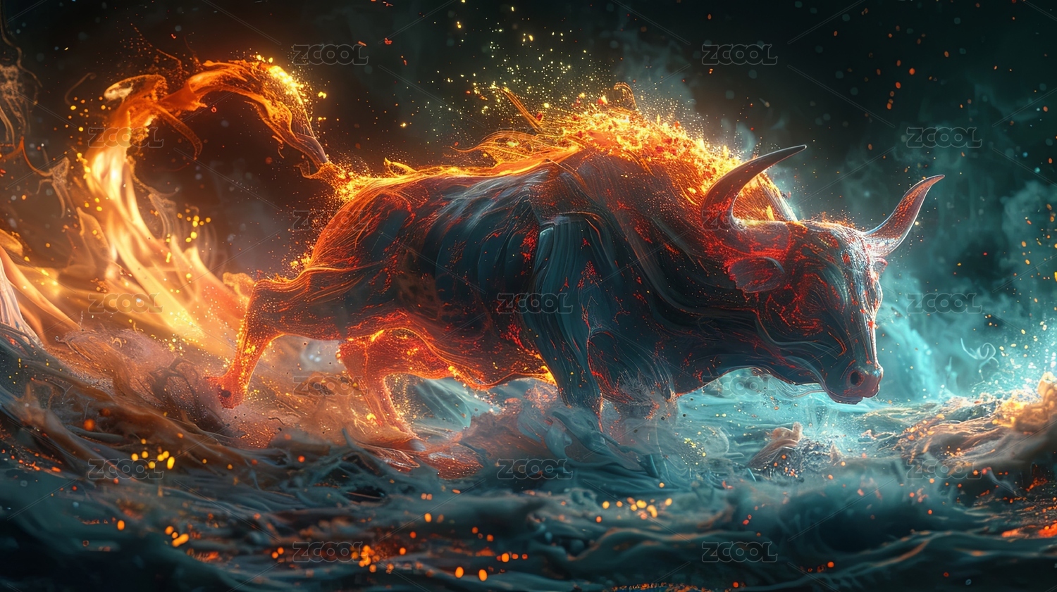 能量漩涡形成了一只红色的公牛