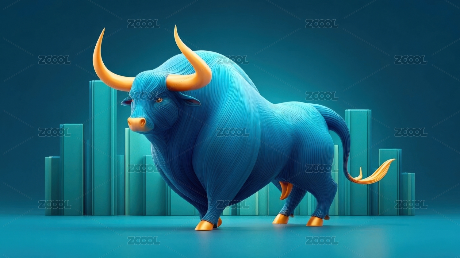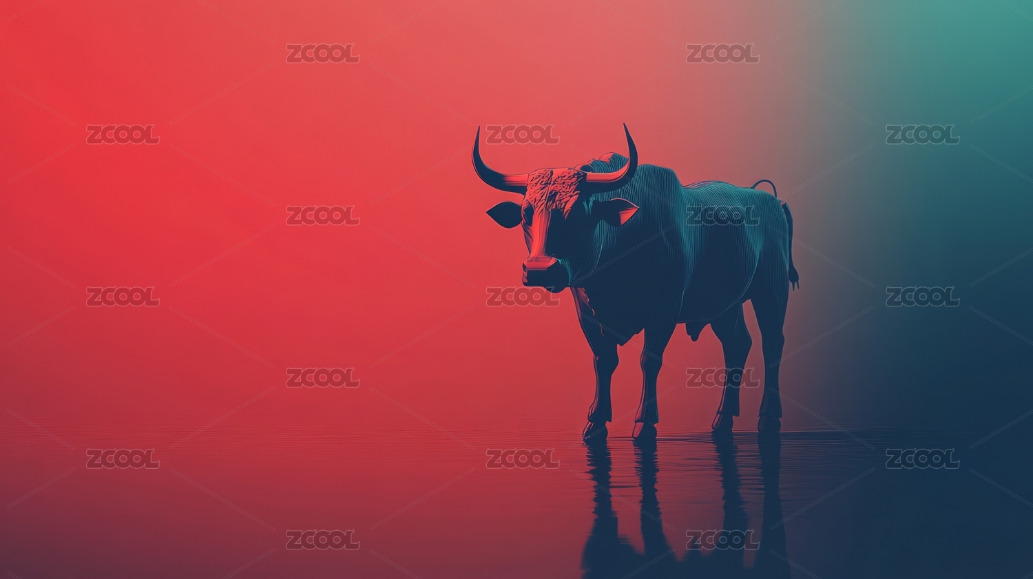 蓝橙渐变背景下的公牛
