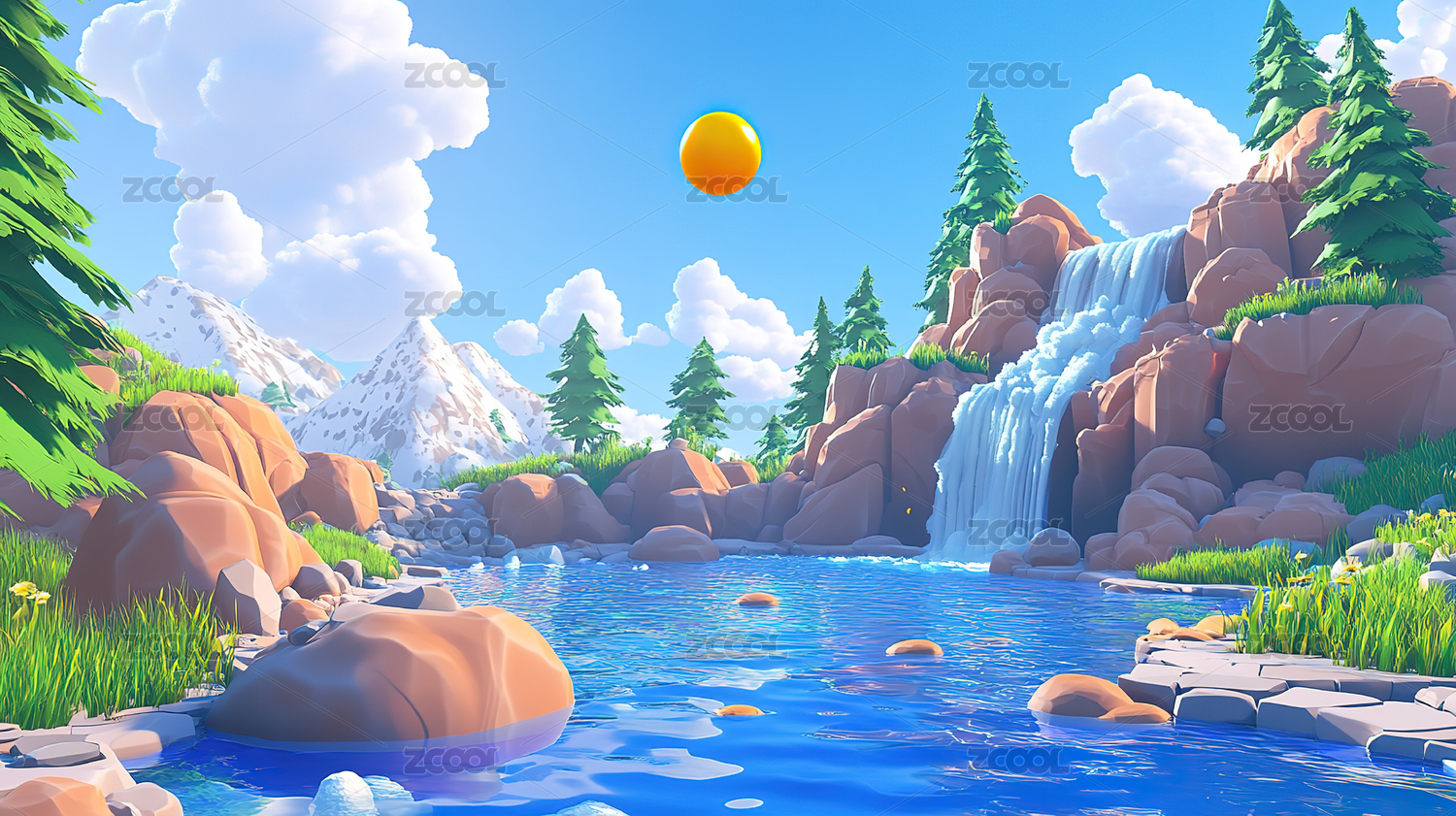 3D卡通自然场景插画