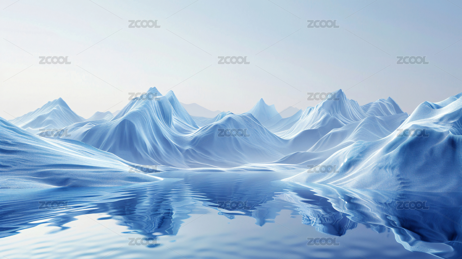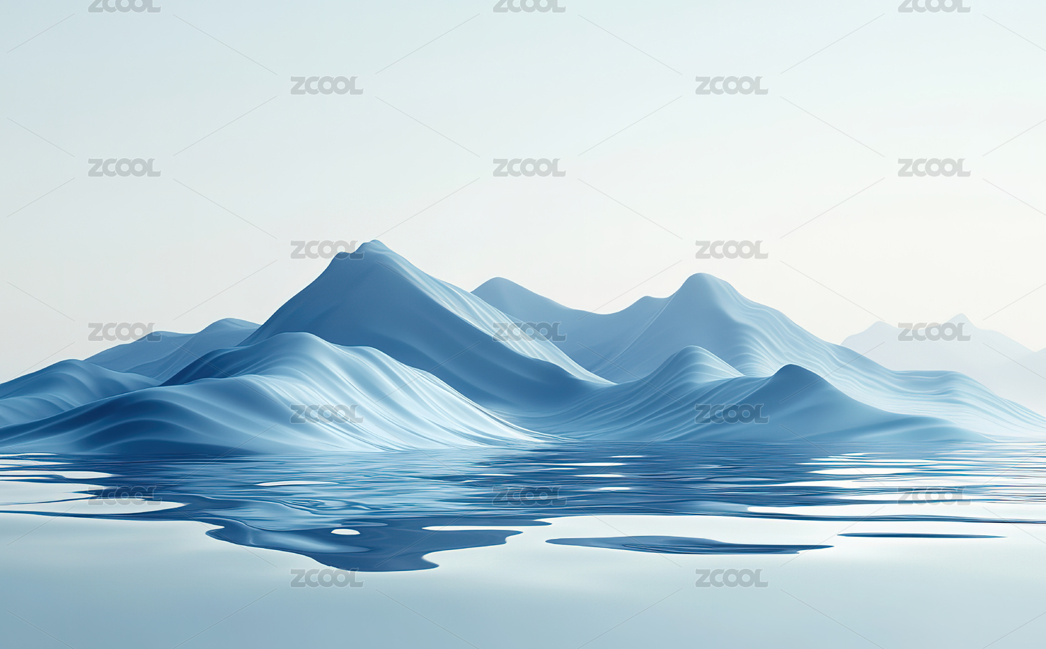 蓝色立体山形波浪3D渲染流波背景