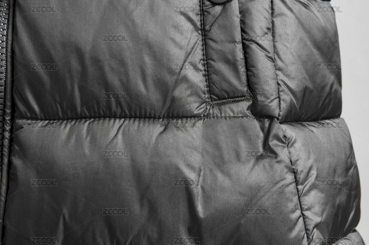 黑色大衣羽绒服的拉链细节