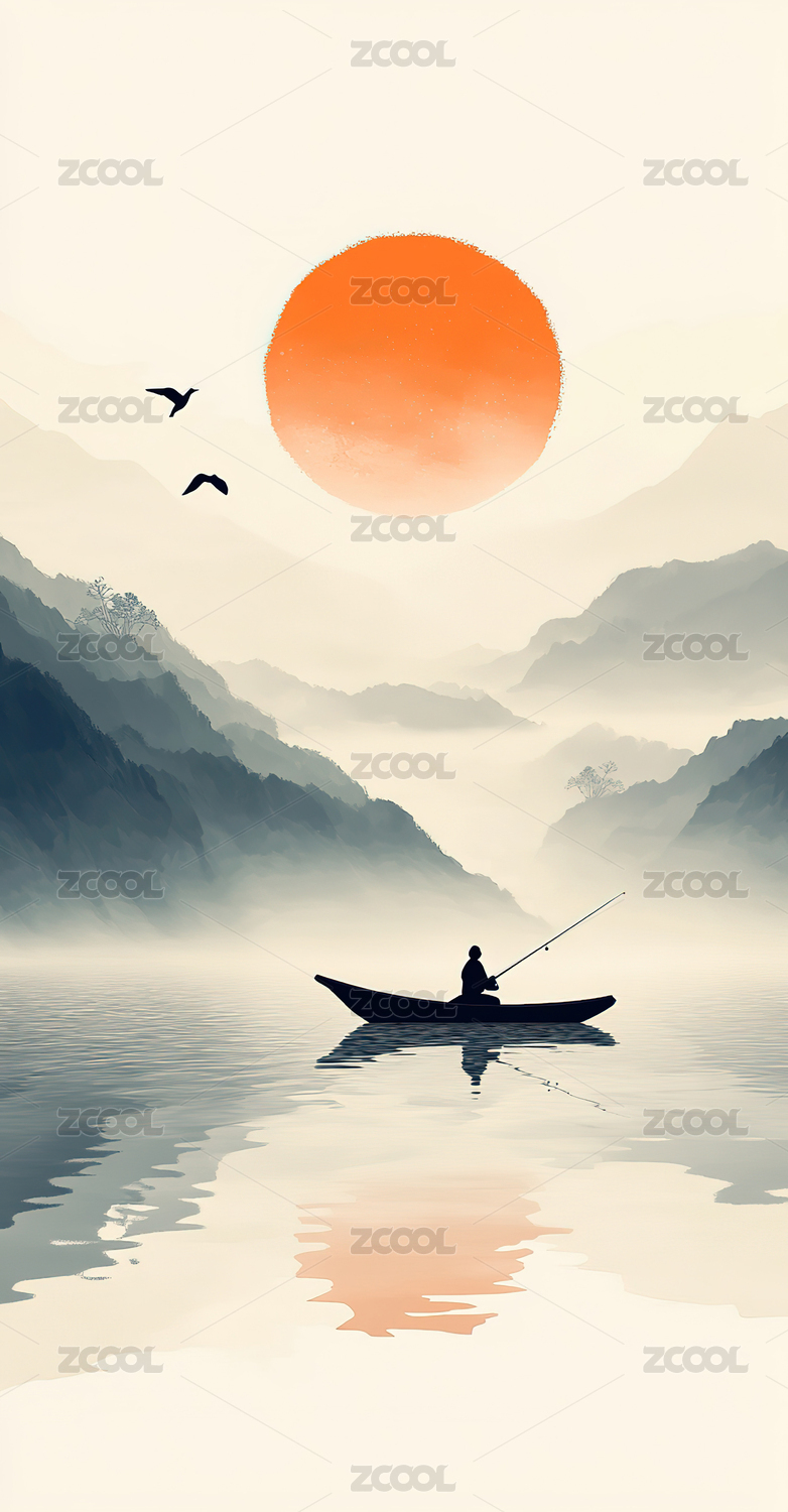 地形,插画,写意画,中国画,新中式风格,水墨画,中国文化,自然,高山