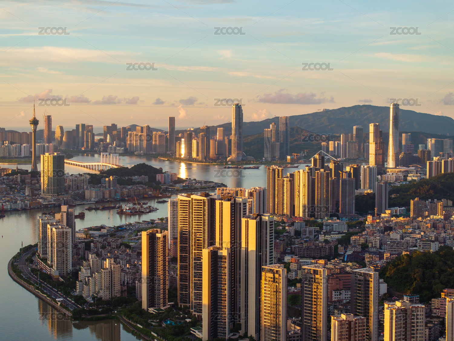 澳门现代城市天际线全景