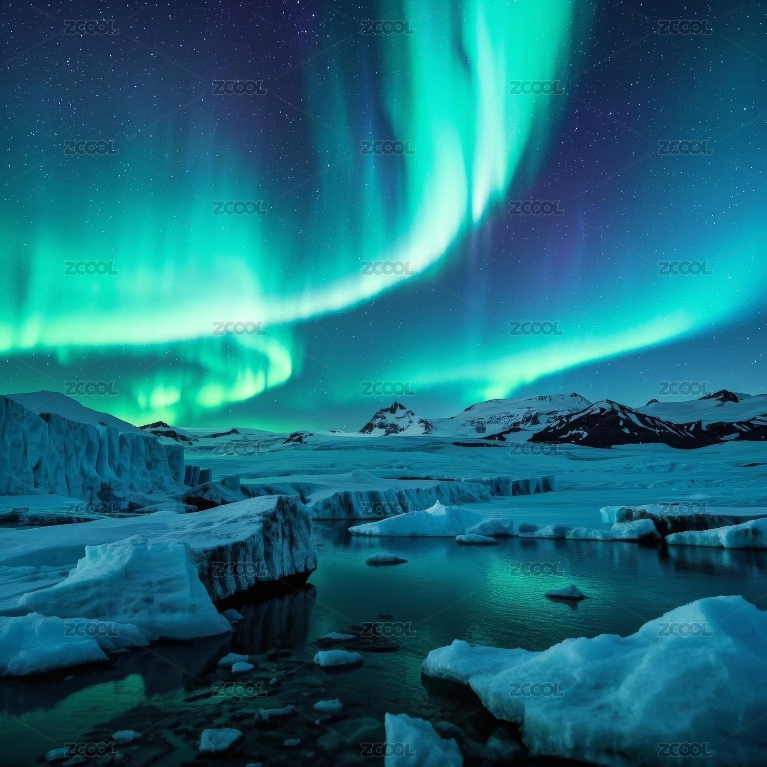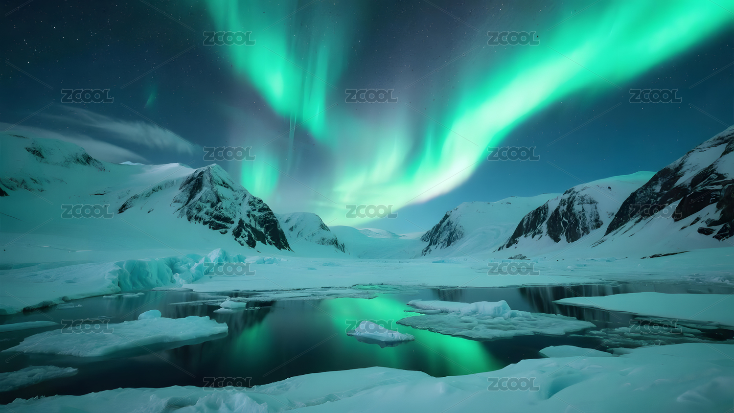 极光下的冰封世界