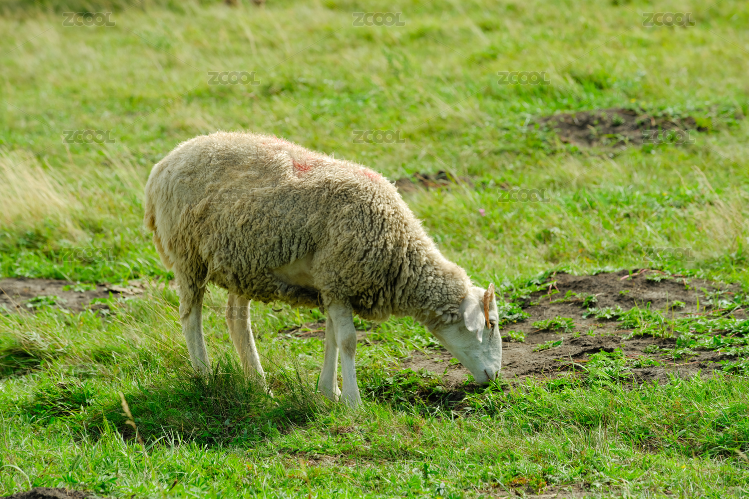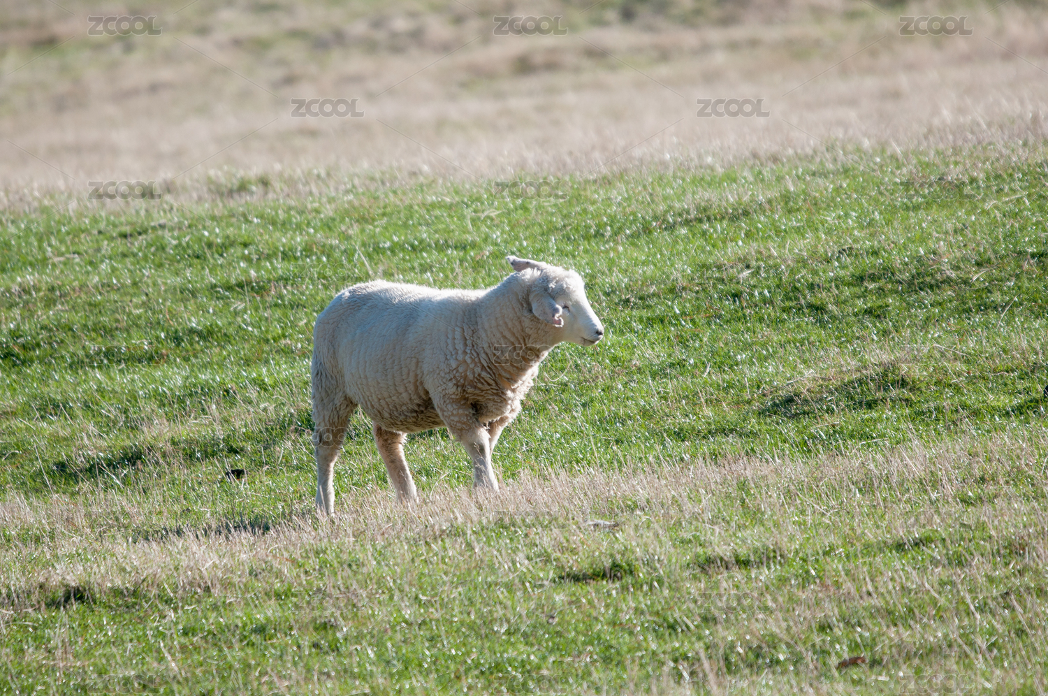 新西兰瓦卡蒂普湖边牧场上准备吃草的一只绵羊