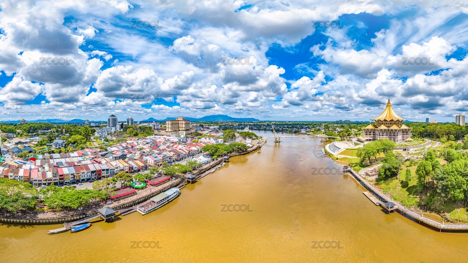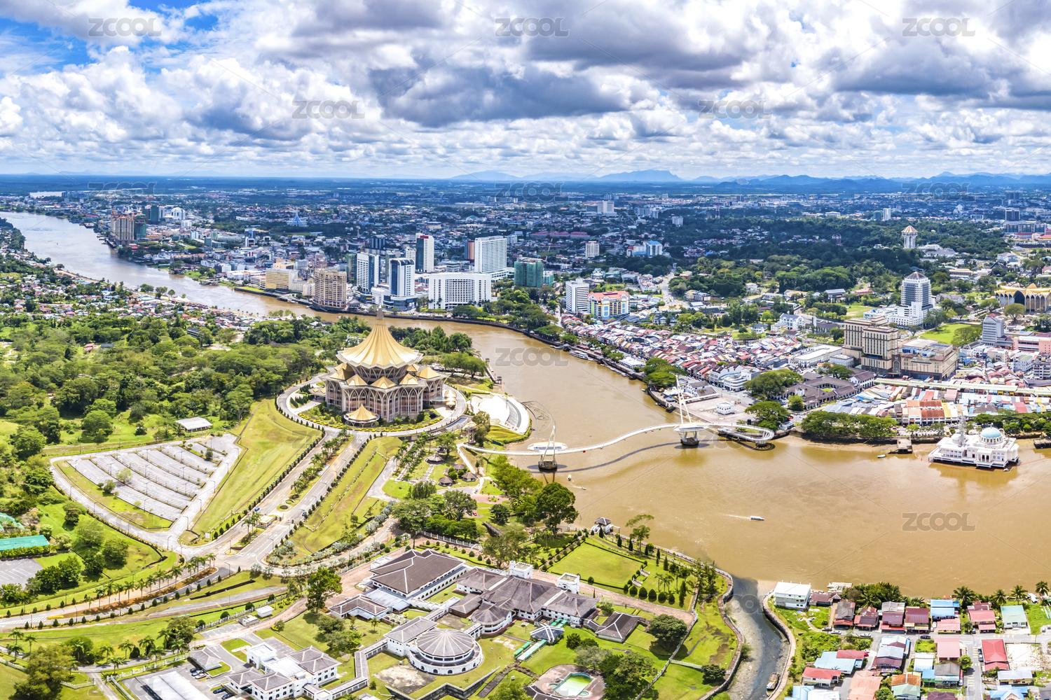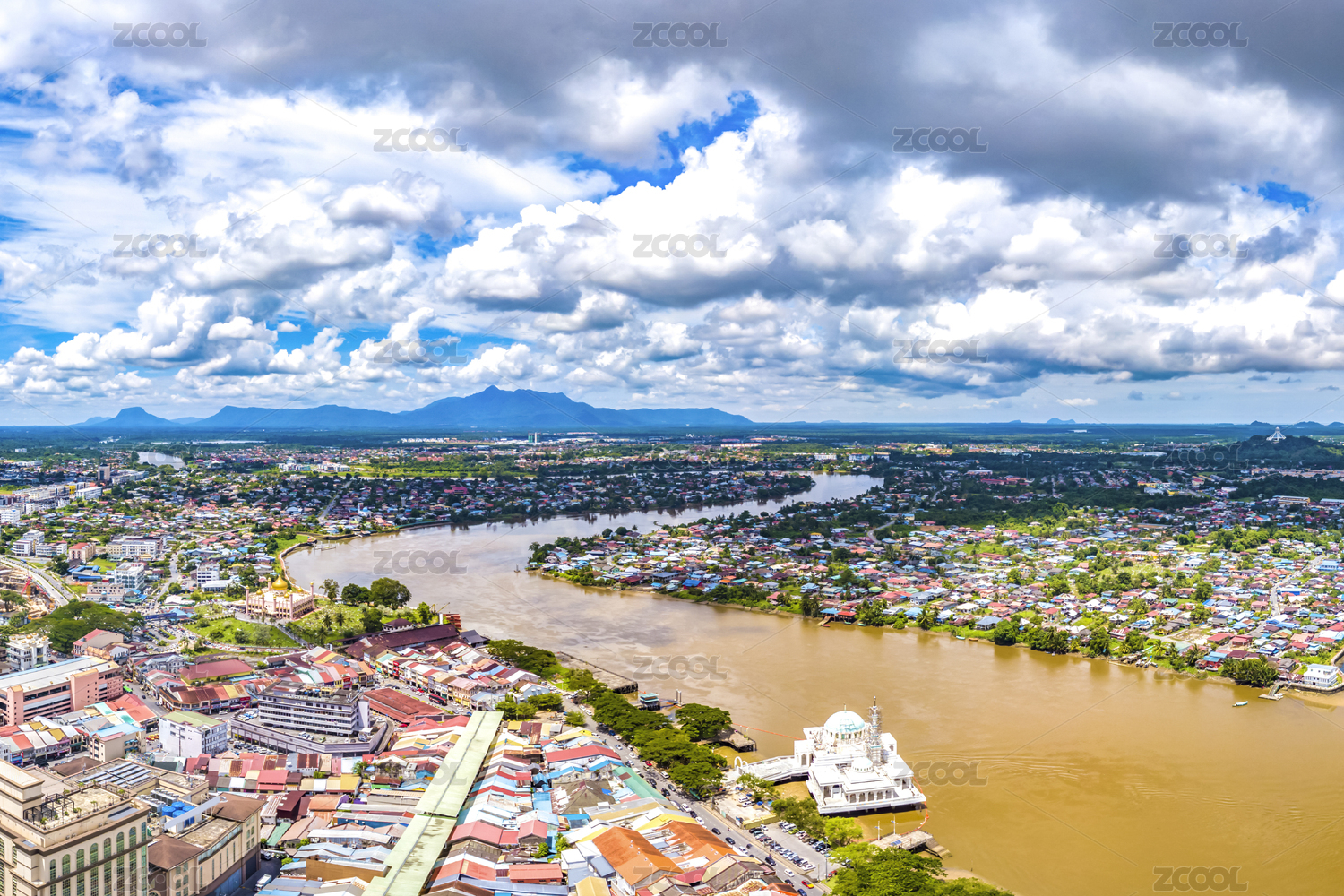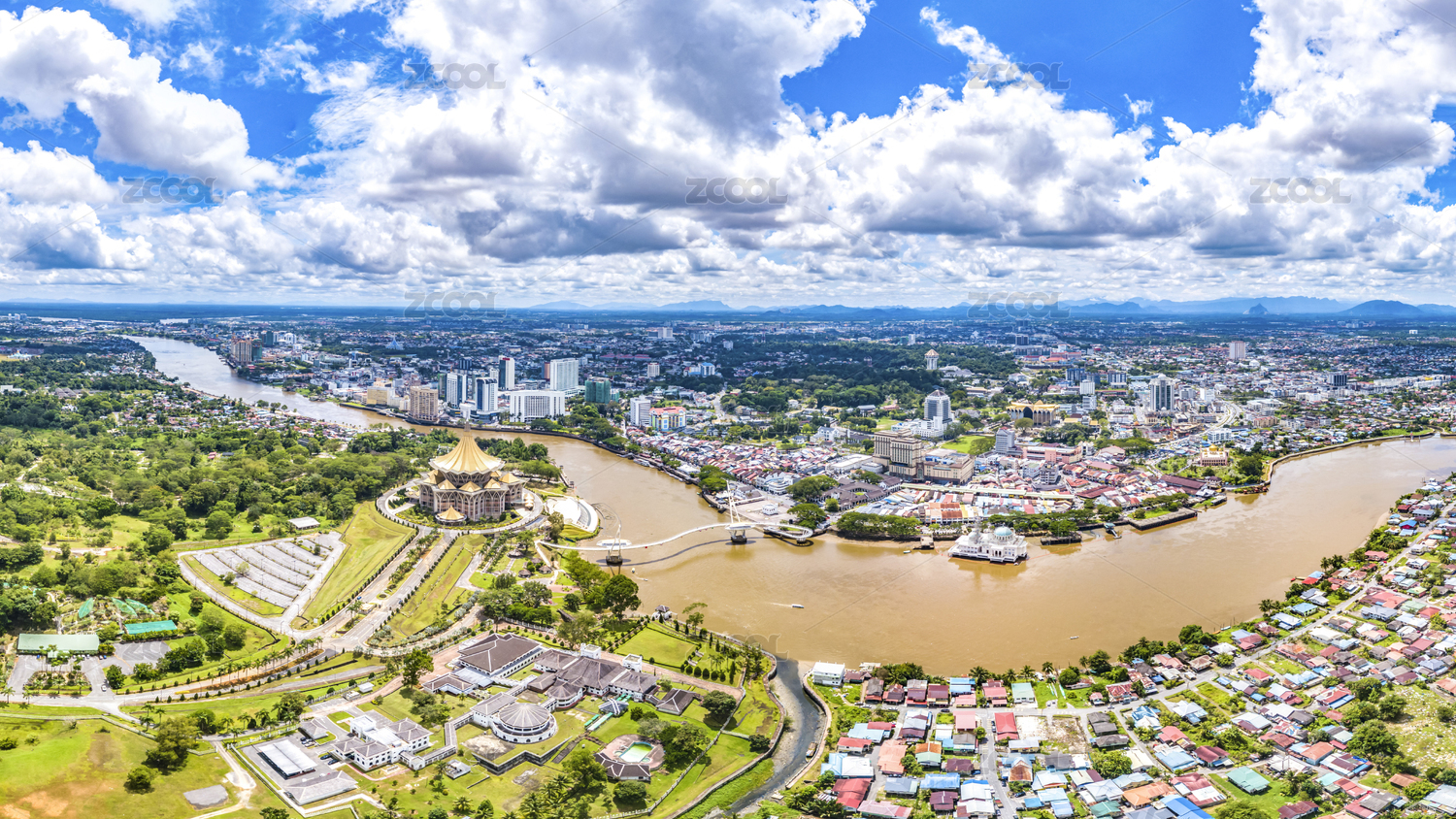 The City of Kuching Aerial View, Capital and the Most Populous City in the State of Sarawak, Malaysia, also a Tourism Destination on Borneo Island Famous for Multi-Culture and Wildlife