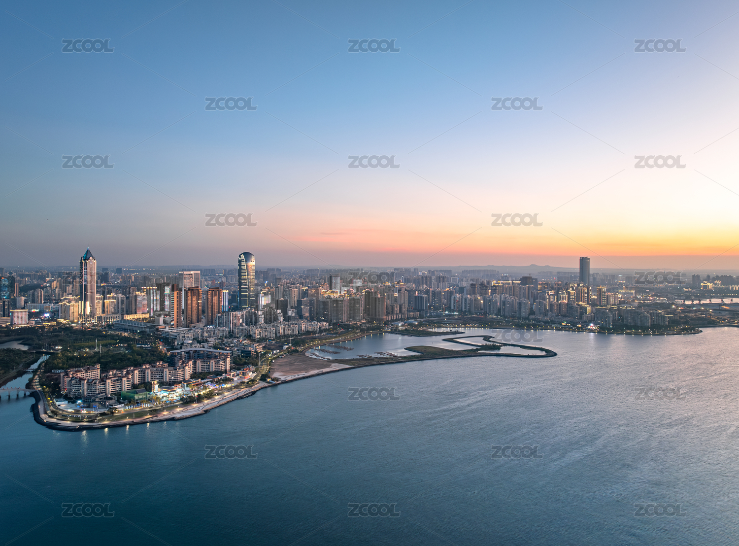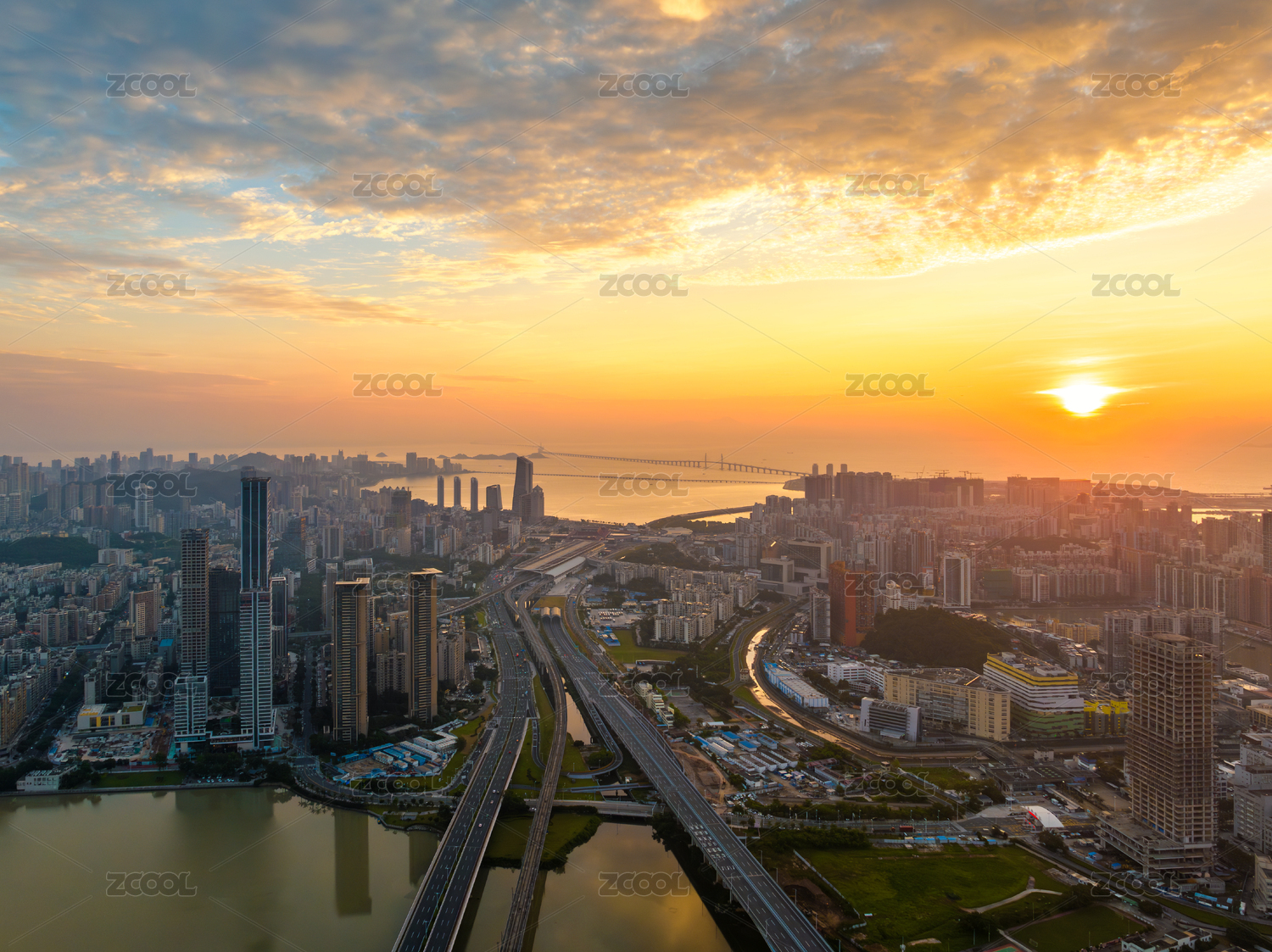 广东珠海鹏瑞珠澳湾中心日出全景航拍